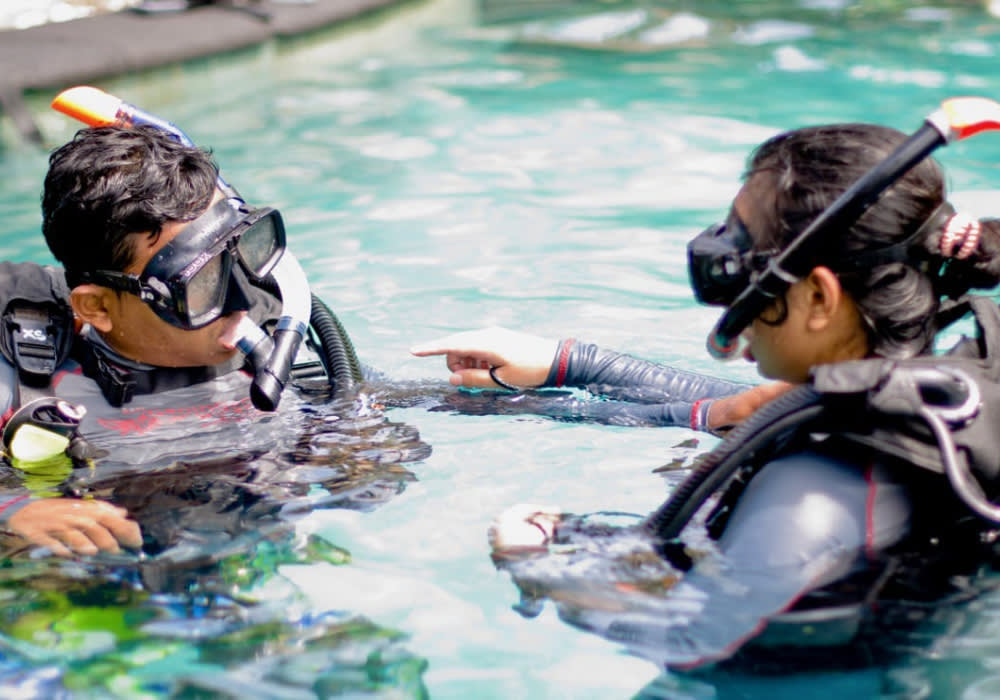 제한 수역 다이빙: 수영장에서 다이빙 기술과 안전 수칙을 익히고 장비에 익숙해지는 즐거운 시간을 가져보세요.