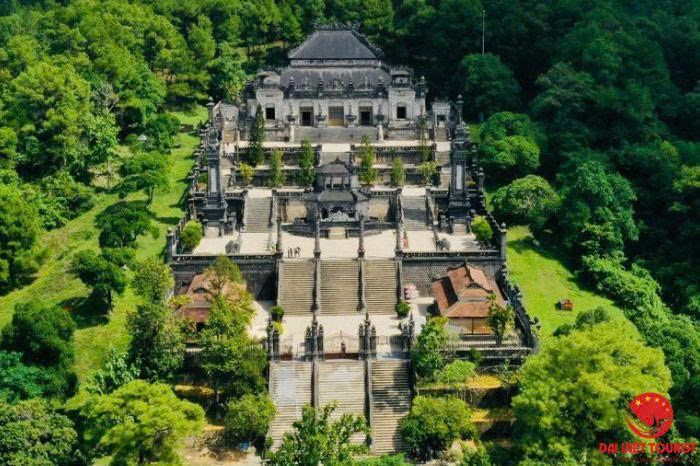 제12대 카이딘 황제의 릉은 응우옌 왕조의 왕릉 중 가장 늦게(1920~1931년) 지어졌으며, 가장 독특하고 이국적인 양식을 보여줍니다.