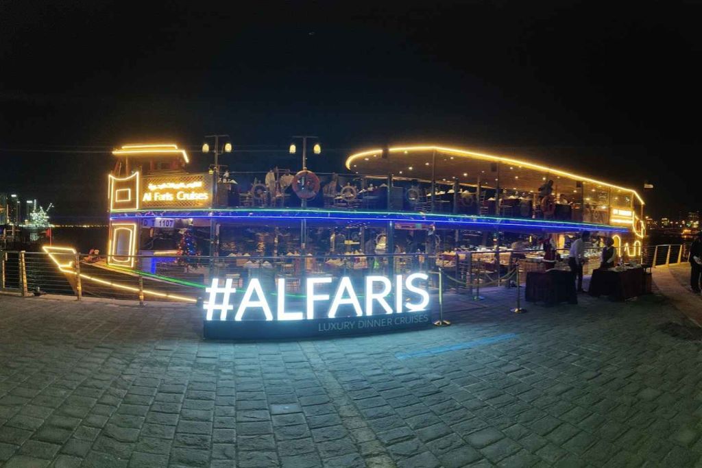 유리로 둘러싸인 알프레스코 다이닝 경험을 제공하는 럭셔리 도우에 탑승하세요. 라 펄로 향하면서 두바이의 활기찬 분위기를 만끽하고 두바이 최초의 센서로 작동하는 폭포 다리인 셰이크 자이드 브리지 아래로 미끄러지듯 이동하며 식사를 즐겨 보세요.