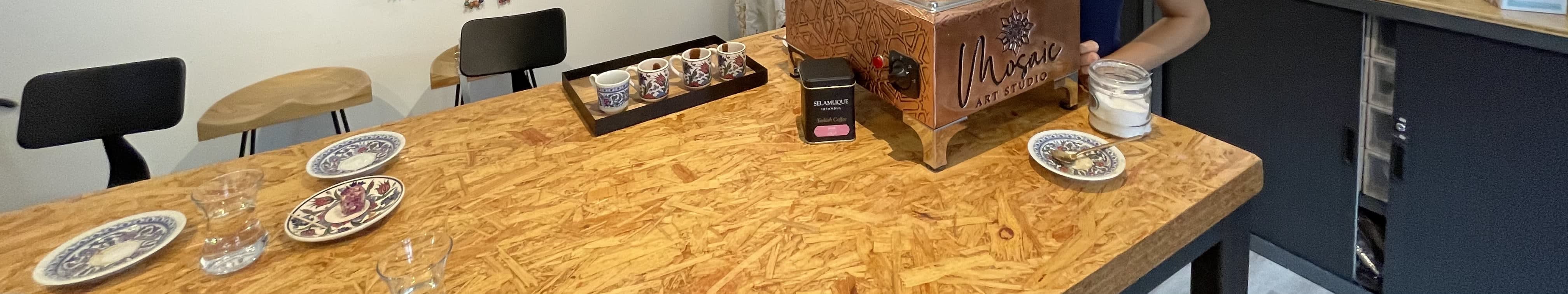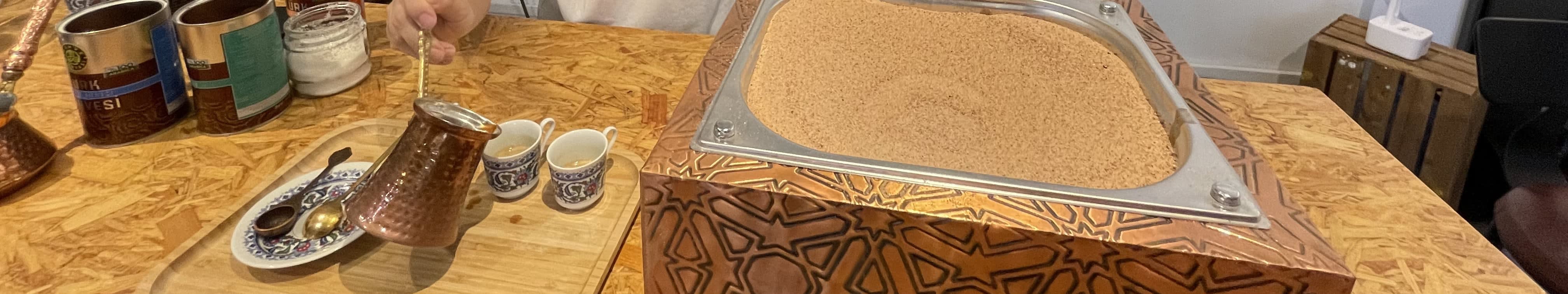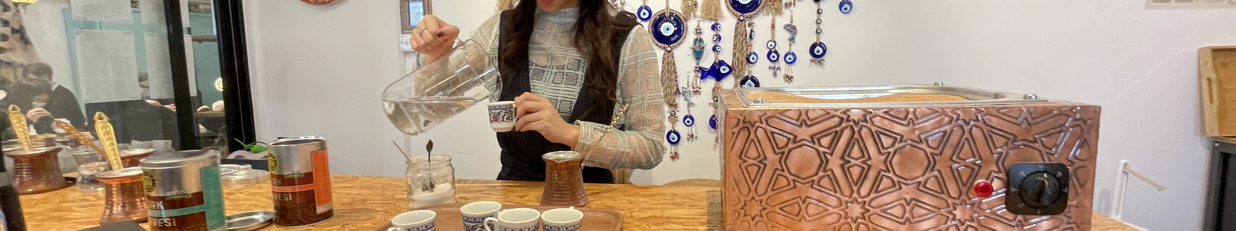 * 모자이크 아트 스튜디오에서 터키 커피를 만드는 문화, 의식, 예술을 배워보세요. * 터키 커피는 인류 역사에서 빼놓을 수 없는 특별한 부분입니다. 커피는 오늘날 가장 많이 소비되는 음료 중 하나입니다. * 역사적 중요성으로 인해 2013년 유네스코 인류무형문화유산으로 지정되었습니다. * 본 워크숍에서는 각 학생이 모래 위에서 서로에게 커피를 만들어주는 시간을 갖습니다.