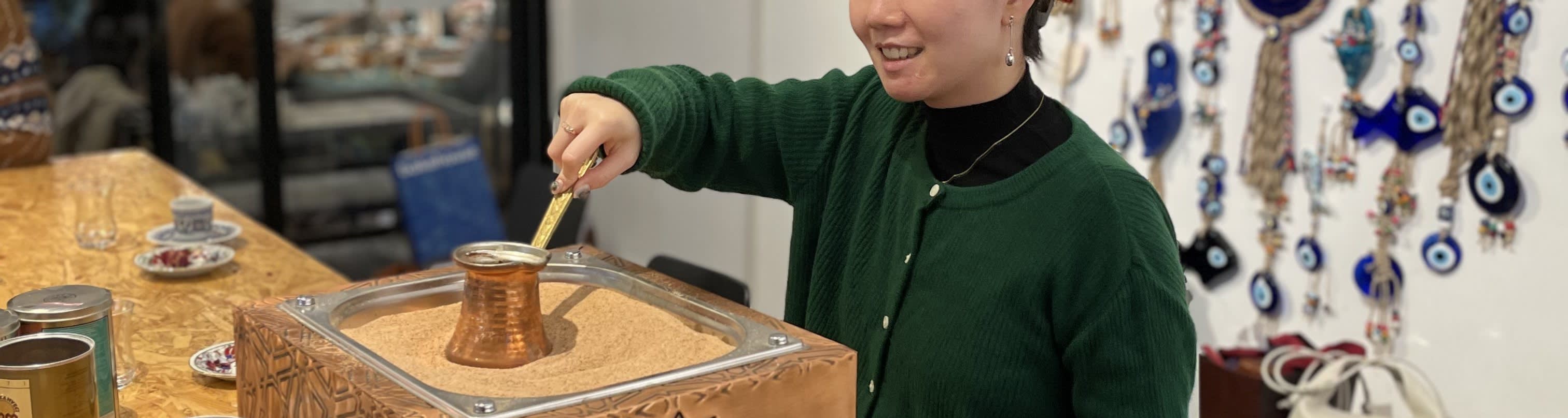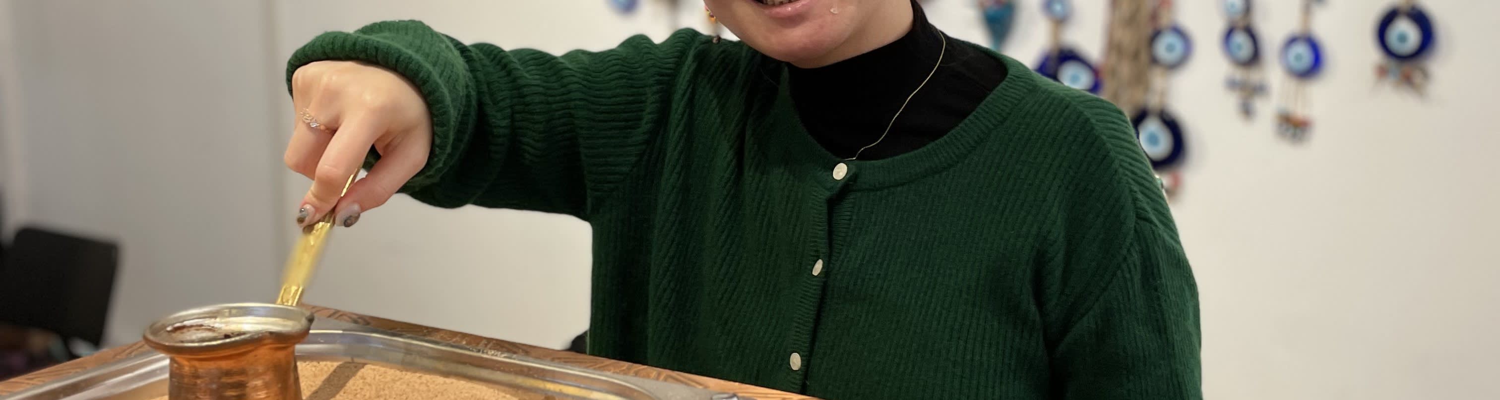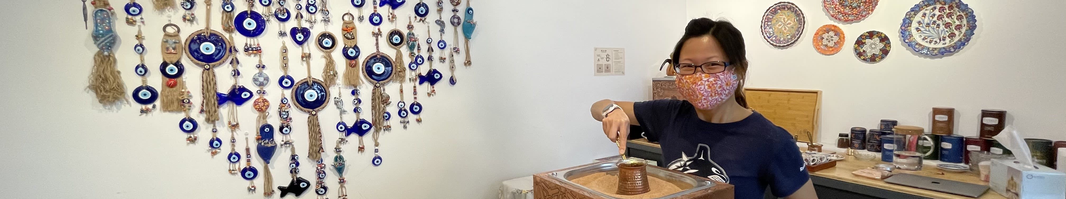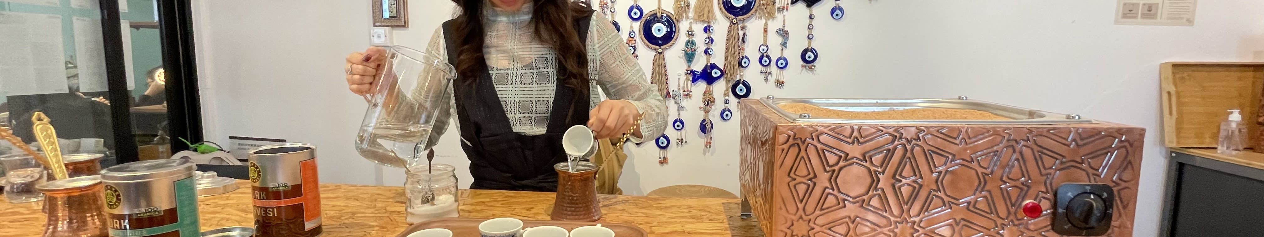 * 모자이크 아트 스튜디오에서 터키 커피를 만드는 문화, 의식, 예술을 배워보세요. * 터키 커피는 인류 역사에서 빼놓을 수 없는 특별한 부분입니다. 커피는 오늘날 가장 많이 소비되는 음료 중 하나입니다. * 역사적 중요성으로 인해 2013년 유네스코 인류무형문화유산으로 지정되었습니다. * 본 워크숍에서는 각 학생이 모래 위에서 서로에게 커피를 만들어주는 시간을 갖습니다.