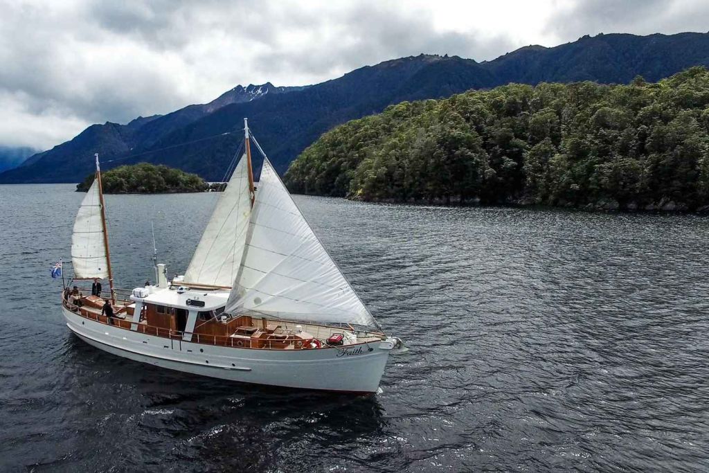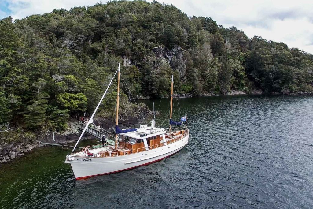 1935년 건조된 역사적인 모터 요트 "페이스"호로 테아나우 호수를 항해하세요