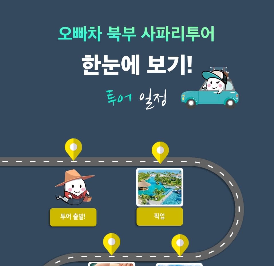 * 번거로움 ZERO! 걱정 없는 하루 복잡한 사파리 이동 동선이나 티켓팅, 마사지 예약 등을 신경 쓸 필요가 전혀 없습니다. 한국인 전용 투어로, 북부 사파리 지역을 가장 효율적이고 알차게 둘러보는 완벽한 하루를 약속드립니다.