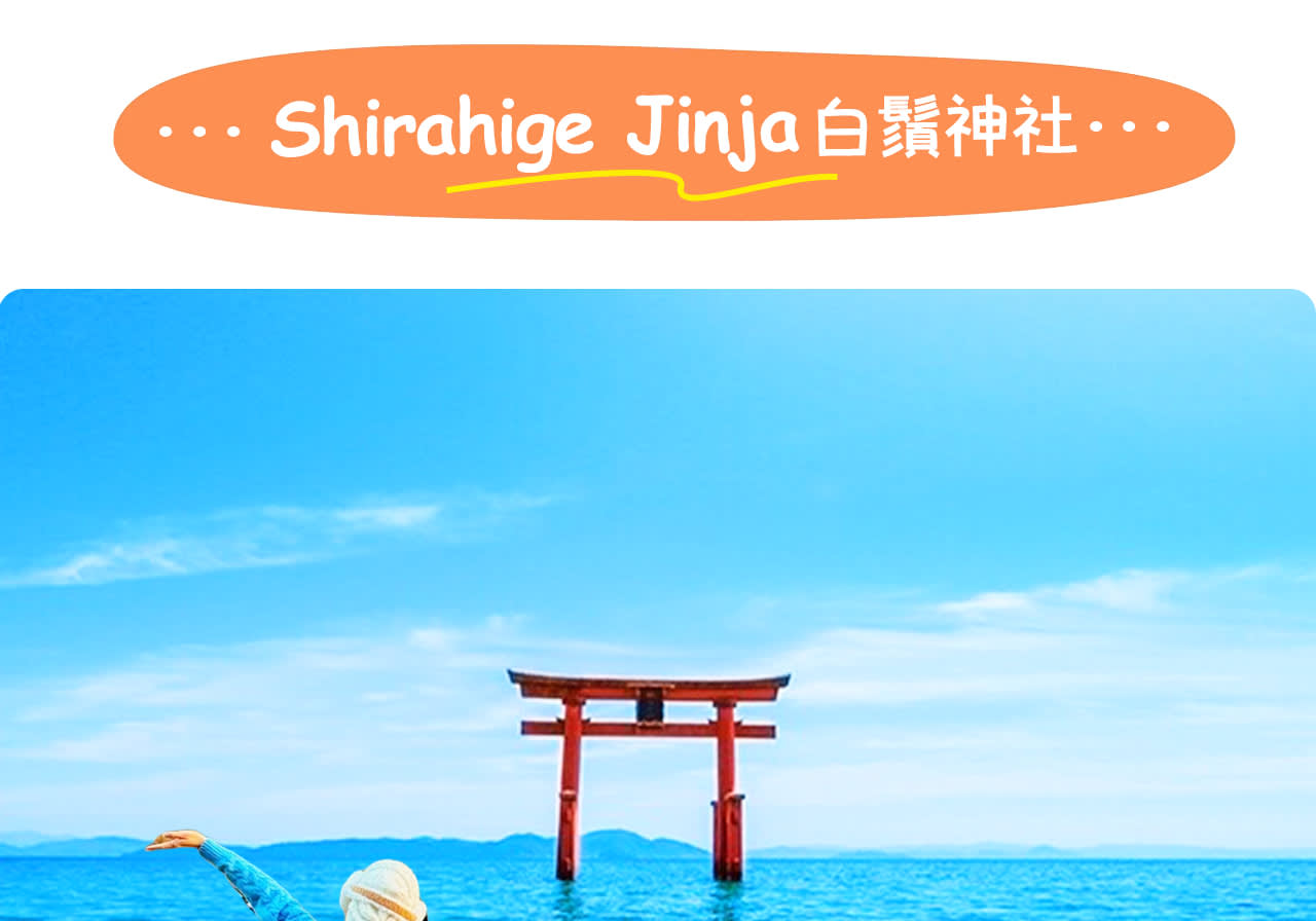 * 시라히게 신사: 오미에서 가장 오래된 신사, 1900년 전에 건립되어 일본 유산으로 선정, 물 위에 떠 있는 도리이가 매우 아름다워 사진 애호가들의 천국임