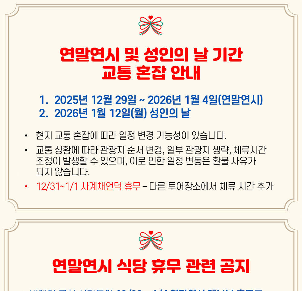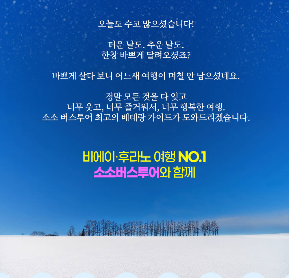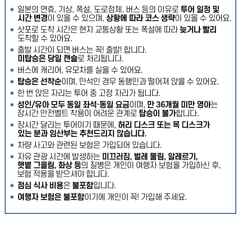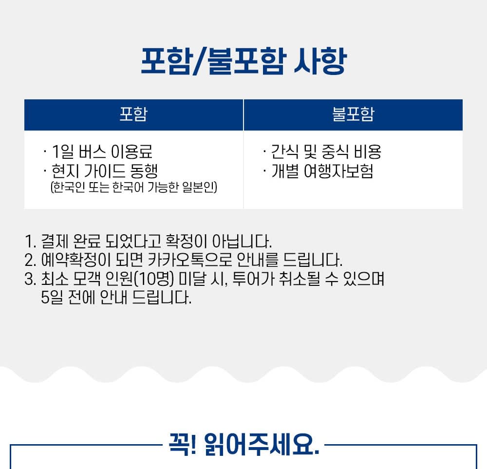 ✔️ 한국어 가이드 찐출동: 말 안 통해서 눈치 볼 일 NO! ✔️ 믿. ✔️ 카톡 바로 가능!: “소소버스투어” 카카오채널로 문의하면 빠른 피드백! ✔️ 알차게 꽉 찬 일정: 핵심 스폿만 쏙쏙 뽑아서 하루 종일 알차게 ✔️ 후기폭발템: 이미 수천 명이 다녀온 한국인 취향 저격 투어