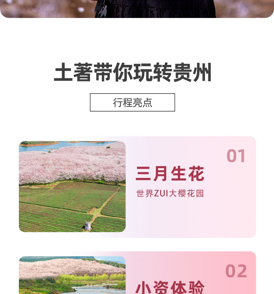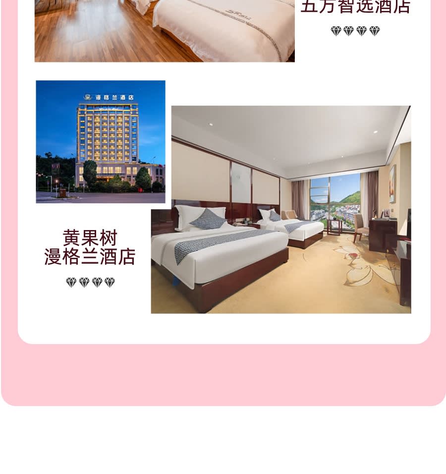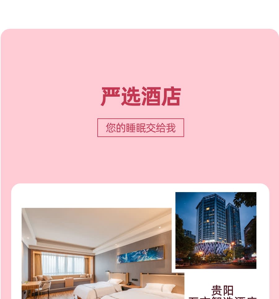 ▶2~6명의 소규모 그룹 - 이용요건 * 연령 제한: 여행을 예약하는 65세(포함)~70세(포함) 노인은 전체 여행 동안 18세(포함)~50세(포함) 사이의 직계 친척 1명 이상을 동반해야 합니다. * 여행을 예약하는 70세(포함)~80세(제외) 노인은 동반인 외에 건강 진단서를 제출해야 하며 여행 전에 "면책 조항"에 서명해야 합니다. * 본 상품은 80세 이상(포함), 2세 미만(포함) 고객의 예약을 받지 않으니 양해 바랍니다. - 어린이 요금 안내 * 적용 범위: 침대를 사용하지 않는 14세 미만의 어린이는 어린이 가격이 적용됩니다. * 비용에는 다음이 포함됩니다: 요금, 보험 * 비용에는 숙박비, 명승지 입장료 및 간단한 교통비가 포함되지 않습니다. 비용이 너무 높을 경우 직접 부담해야 합니다. * 14세 미만의 어린이는 모든 명승지 무료입니다. 황과수 및 신장 1.4m 미만의 어린이는 관광 티켓이 무료입니다. 신장 1.2m 미만의 어린이는 기타 명승지의 소형 교통 티켓이 무료입니다. * 관광지 교통비 참고 : 핑바 벚꽃 관광차 40위안/인, 황과수 관광차 50위안/인, 황과수 보험 10위안/인 * 아동 등록 연령과 실제 출입국 연령이 다를 경우, 정상 티켓 가격에 따라 차액을 지급합니다. (소아 연령 확인을 위해 신분증 사본 또는 호적부 사본을 지참해야 합니다.) - 추가정보 * 구이저우는 아침과 저녁의 기온차가 커서 기후 변화가 급격하게 변하기 때문에 비옷과 두꺼운 옷을 준비하는 것이 좋으며, 야외용 재킷을 선호합니다. * 관광지 내 투어는 주로 도보로 진행됩니다. 운동화나 등산화를 착용하는 것이 좋습니다. * 구이저우의 음식은 맛이 강하므로 긴급 상황에 대비하여 일반적으로 사용되는 위장약을 가져갈 수 있습니다. 여행 중 일부는 경치가 좋은 지역에서 혼자 식사하여 에너지를 보충하는 것이 좋습니다. * 귀저우의 명승지는 멀리 떨어져 있고 교통 상황이 복잡하므로 돌아오는 날 20:00 이후에는 기차나 비행기를 예약하는 것이 좋습니다. * 행사 중 발생한 쓰레기는 직접 처리해 주시고, 임의로 버리는 행위는 엄격히 금지되어 있습니다. * 구이저우 관광지의 투어는 대부분 도보로 진행됩니다. 투어 중 관광지의 지리적 환경과 지형은 비교적 복잡하고 다양하므로, 투어 가이드의 안내에 따라 안전하게 투어하시기 바랍니다. 위험지역, 금지지역에는 가지 마시기 바랍니다. * 어린이 가격 설명: 2~14세 어린이(포함되지 않음)는 어린이 가격에 적용됩니다. 어린이 가격에는 침대, 관광지 입장권, 관광지 내 소형 교통수단이 포함되지 않습니다. 기타 기준은 성인과 동일합니다. 어린이가 침대를 이용해야 하는 경우 싱글룸에서 차액을 지불하시기 바랍니다. 관광지 내 교통비는 어린이의 키에 따라 부과됩니다. 키가 너무 높을 경우 요금이 즉시 지불됩니다. * 게스트 특징: 안전상의 이유로 참가자는 건강해야 합니다. 감염성 질환, 심혈관 질환, 뇌혈관 질환, 호흡기 질환, 정신 질환, 심한 빈혈이 있는 사람, 대형 및 중형 수술에서 회복 중인 환자, 거동이 불편한 분. 임산부, 임산부 등 여행에 적합하지 않은 분은 등록하지 마십시오.대리로 등록하는 경우에는 미혼 자녀의 주문을 받지 않습니다. 반드시 어른과 함께 가셔야 합니다. * 구이저우(Guizhou)의 제한된 현지 호텔 상황으로 인해 대부분의 호텔에서는 트리플룸이나 엑스트라 베드를 제공할 수 없습니다. 한 객실에 성인 3명이 숙박해야 하는 경우, 예약 시 명확하게 기재해 주시기 바랍니다. 저희 에이전시가 귀하를 대신해 조정해드리며, 추가 침대 요금이 부과될 수 있습니다. 알려주세요 * 1인실 차액: 본 상품은 성인 2인이 1실을 사용하는 기준으로 계산됩니다. 객실 공유가 허용되지 않거나 남성 1인/여성 1인으로 주문한 경우 예약 시 1인실 차액을 선택하시기 바랍니다. 어린이 요금에는 침대 요금이 포함되어 있지 않으므로 성인 1명과 어린이 1명이 침대를 사용하는 경우 예약 시 싱글룸 요금을 별도로 지불해 주시기 바랍니다. 나이가 많은 어린이는 싱글룸 요금을 지불하는 것이 좋습니다. 또한, 다른 사람과 방을 공유하는 어린이의 성별은 성인의 성별과 동일해야 민망함을 피할 수 있습니다. * 여행 지침: * 당사는 보통 3일 전(최소 여행 1일 전)에 "여행 출발 통지서" 또는 여행 가이드 및 운전기사의 확인 전화번호를 보내드립니다. 받지 못하신 경우, 제때에 연락 주시기 바랍니다. 다른 관광객의 일정에 지장을 주지 않도록 투어 가이드가 합의한 시간에 픽업 장소에 도착해주세요. 지각으로 인해 투어에 참여하지 못하신 경우, 이에 대한 책임은 본인 본인에게 있음을 양해해주시기 바랍니다. * 본 일정은 당사와 핵심 협력 여행사가 주관하는 공동 여행 루트입니다. 약속된 서비스 내용과 기준을 변함없이 유지한다는 전제하에, 다른 플랫폼 및 여행사 고객과 단체 예약을 결합하여 통일된 여행 일정을 안내해 드립니다. * 여행 일정 중 일부 명승지, 레스토랑, 휴게소 및 기타 장소에는 쇼핑몰 및 기타 쇼핑 장소가 있습니다. 위에 언급된 장소는 여행사가 지정하는 쇼핑 장소가 아닙니다. 관광객들은 합리적으로 소비하고 자신의 필요에 따라 필요한 영수증을 요청해야 함을 따뜻하게 상