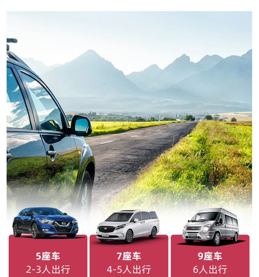 * 소형차 단체여행 : 2~6인이 이용할 수 있는 가장 경제적인 소형차 단체여행으로, 언제든지 2명이 여행할 수 있으며, 각 단체는 최대 6명이 함께 할 수 있습니다.