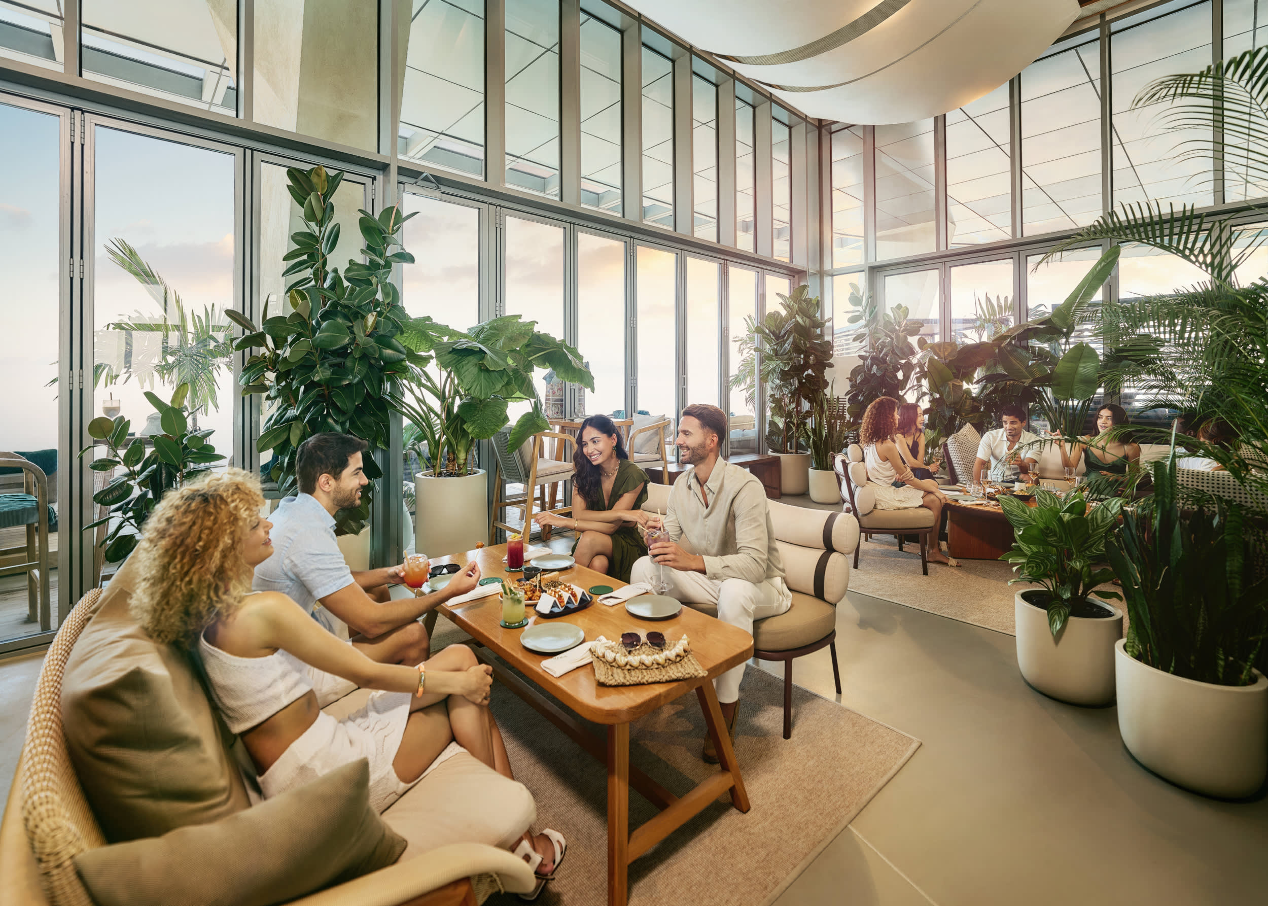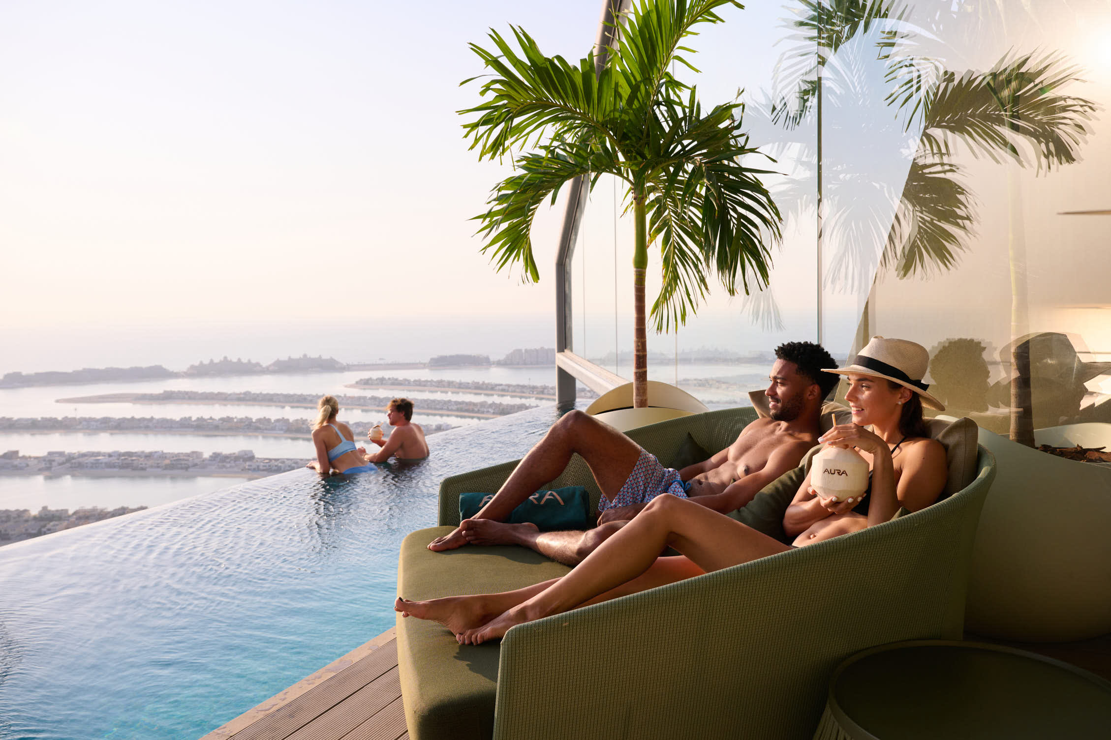 두바이 210m 상공에 자리한 AURA에서 도시의 스카이라인, Palm Jumeirah, 아라비아만의 숨 막힐 듯 아름다운 전망을 감상하며 특별한 시간을 보내세요. 세련된 다이닝, 활기 넘치는 분위기, 평온한 휴식이 어우러진 AURA에서 잊지 못할 추억을 만들어보세요. Executive Chef Craig Best가 선사하는 Pan-Asian 스타일의 메뉴를 맛보며 감각을 자극하는 특별한 경험을 누릴 수 있습니다. 선라이즈 풀 경험부터 매혹적인 이브닝 풀 리트리트까지, 반짝이는 온도 조절 오아시스에서 편안하게 휴식을 취해보세요. 특별한 저녁을 위해 매주 금요일 20:00-23:00에 열리는 AURA 나이트 브런치에서는 라이브 DJ 비트와 함께 셰어링 메뉴와 무제한 음료를 즐길 수 있습니다. AURA는 특별한 기념일, 맛있는 식사, 편안한 휴식 등 잊을 수 없는 최고의 경험을 선사합니다.
