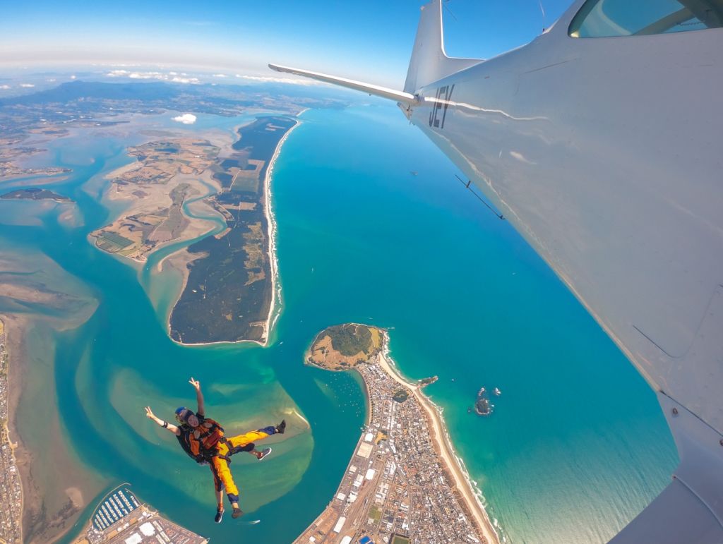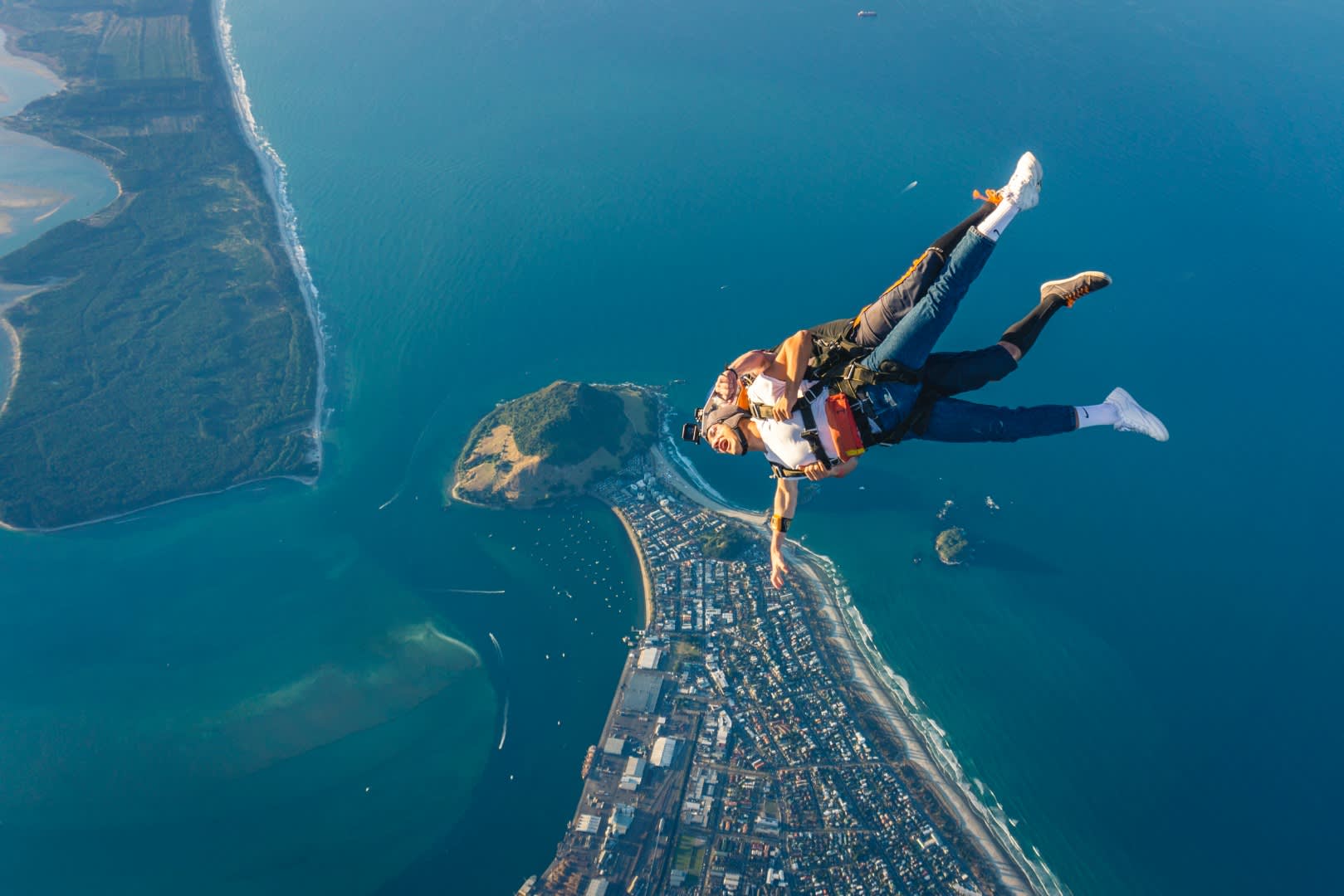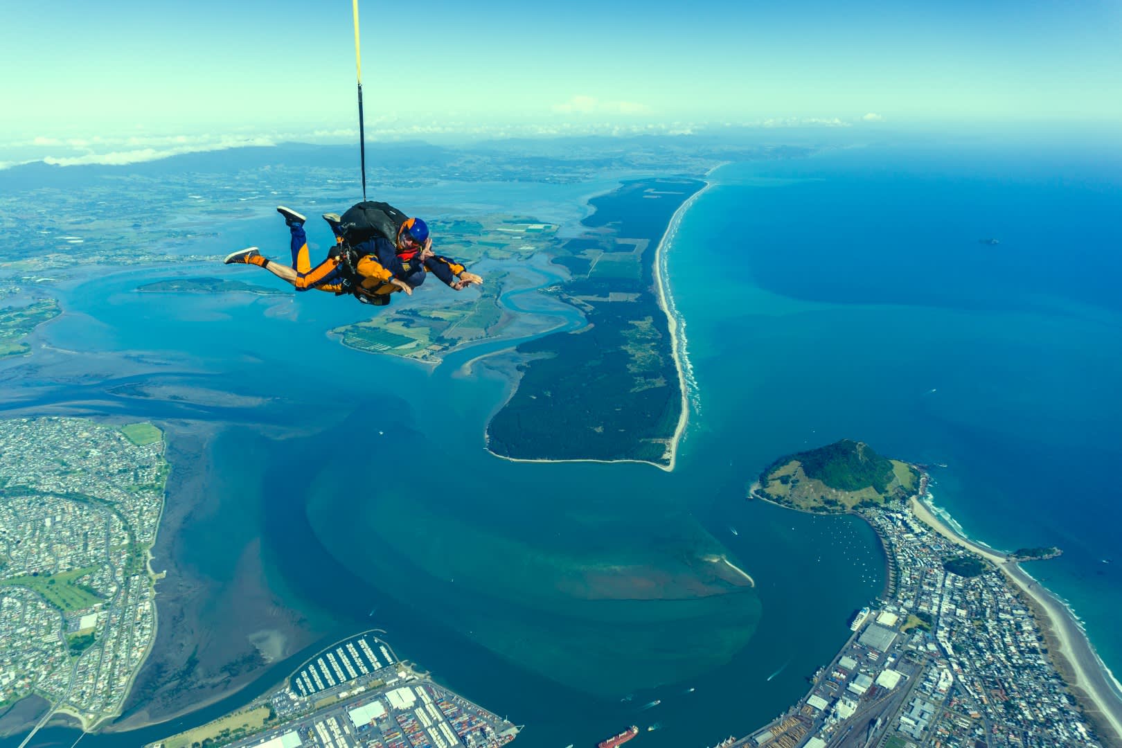 * 2시간 이내로 진행되는 스카이다이빙 패키지로, 어떤 일정에도 쉽게 넣을 수 있습니다 * 원하시는 시간을 선택하세요: 스카이다이빙은 매시간 정각에 타우랑가 공항에서 출발합니다 * 온 가족이 함께 즐길 수 있습니다: 7세 이상이면 누구나 점프를 시도할 수 있습니다 * 스릴을 추구하는 분들은 낙하산을 직접 조종하며 하강하는 짜릿함을 경험할 수 있습니다