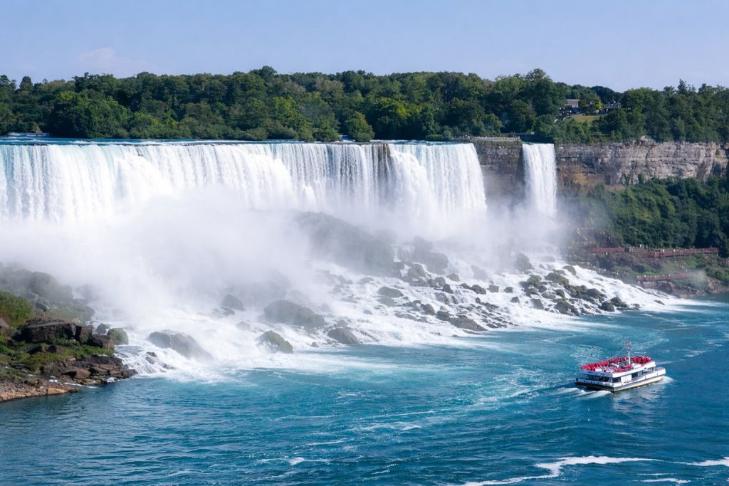 버팔로에서 출발하는 미국 및 캐나다 올인원 당일 투어로 나이아가라 폭포를 모든 각도에서 경험해 보세요. 바람의 동굴(Cave of the Winds)에서 굉음을 내는 폭포수 아래까지 걸어가 보고, 테이블 록 센터(Table Rock Centre)에서 말발굽 폭포(Horseshoe Falls) 가장자리에서 몇 인치 떨어진 곳에 서보고, 이 지역에서 가장 상징적인 모험인 전설적인 안개 아가씨(Maid of the Mist)에 탑승해 보세요. 캐나다로 건너가 나이아가라 스카이휠(Niagara SkyWheel)과 스카이론 타워(Skylon Tower)에서 높은 곳에서 파노라마를 감상하며 폭포의 웅장함과 아름다움을 위에서 담아보세요. 최소한의 시간에 최대한의 하이라이트를 찾는 여행객을 위해 고안된 이 당일 여행은 세계 7대 자연경관 중 하나인 나이아가라 폭포의 가장 잊을 수 없는 전망을 한데 모았습니다.
