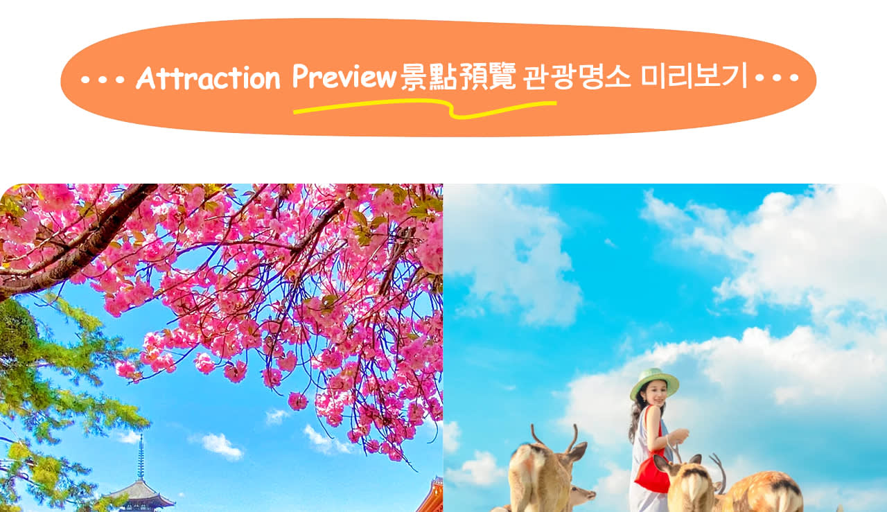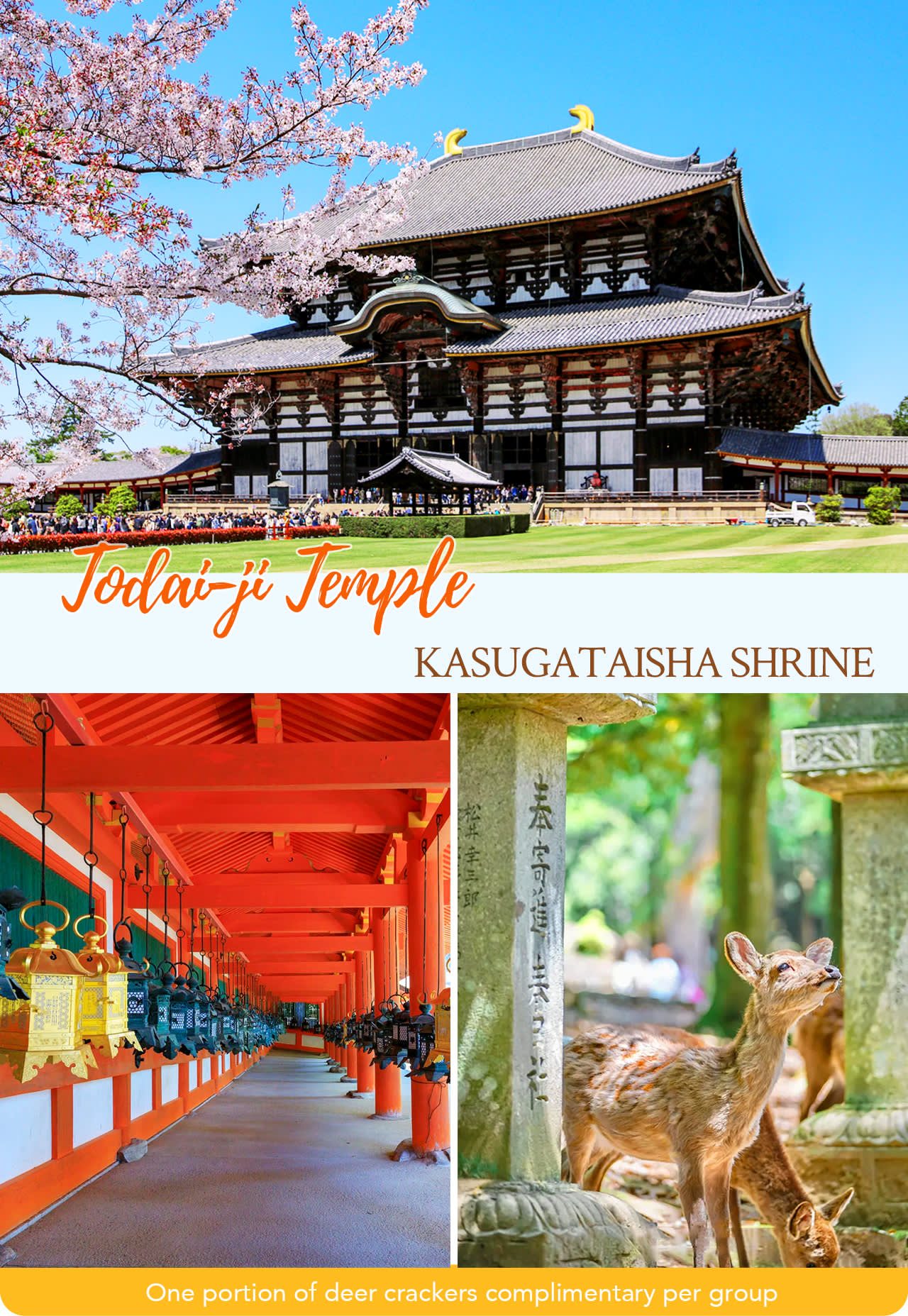 사계절의 아름다운 경치와 일본의 정취에 흠뻑 빠져 보세요. 복고풍 사가노 로맨틱 열차를 타고 산천을 가로지르며, 대나무 숲길과 유젠 키모노 숲길을 거닐고, 나라 공원의 온순한 사슴과 만나고, 후시미 이나리 신사의 센본도리이를 참배하며, 치이카와 본점의 귀여운 세계를 만끽하고, 교토와 나라의 클래식함과 낭만을 마음껏 누려보세요. 특별히 사슴 센베이 1개/그룹을 드립니다(4~6인 그룹당 2개/그룹). 사슴 센베이 품절 시 환불은 불가합니다.