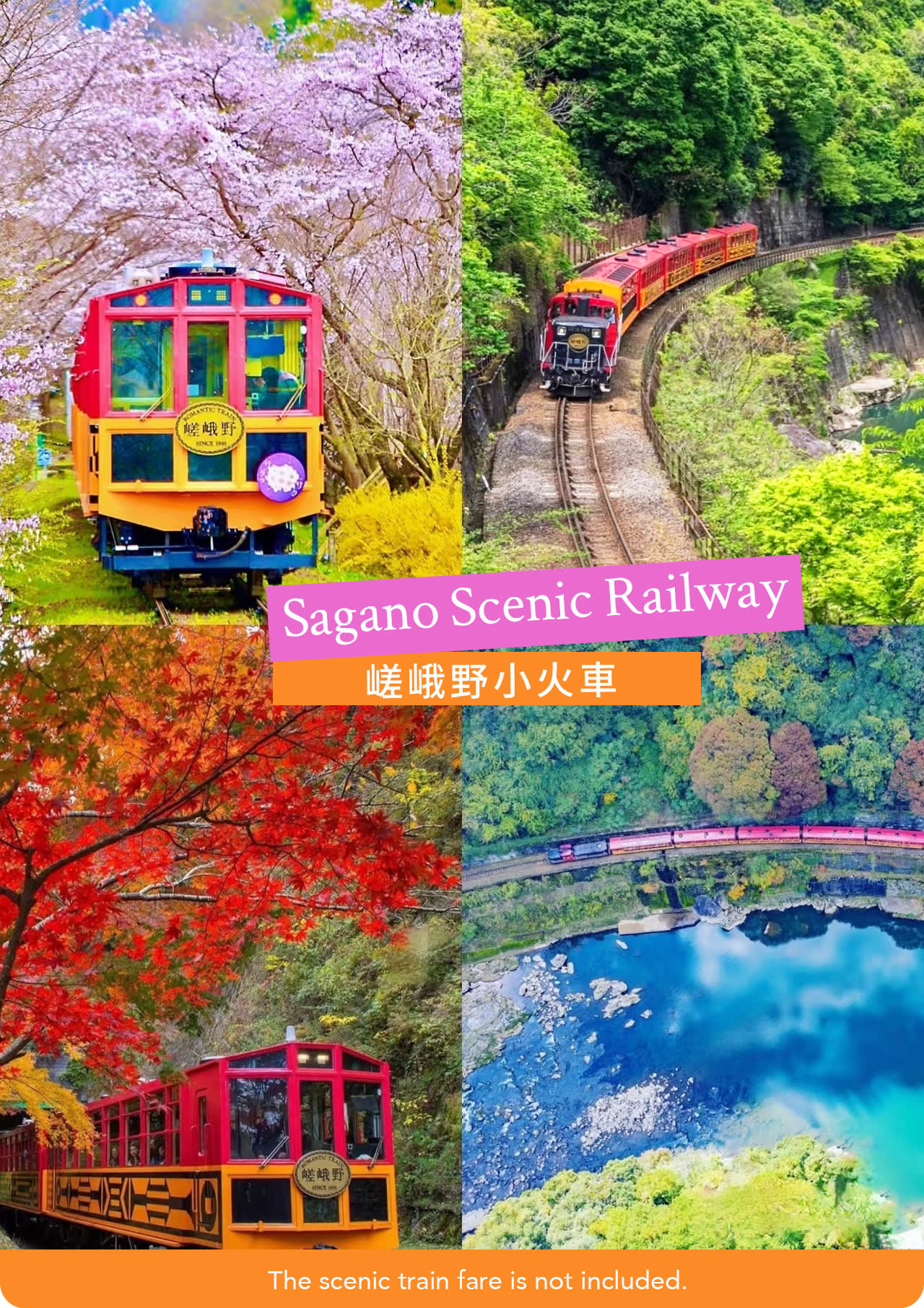 * 사가노 관광열차를 타고 아라시야마의 아름다운 자연을 가로지르며, 시적인 대나무 숲길을 거닐어보세요.