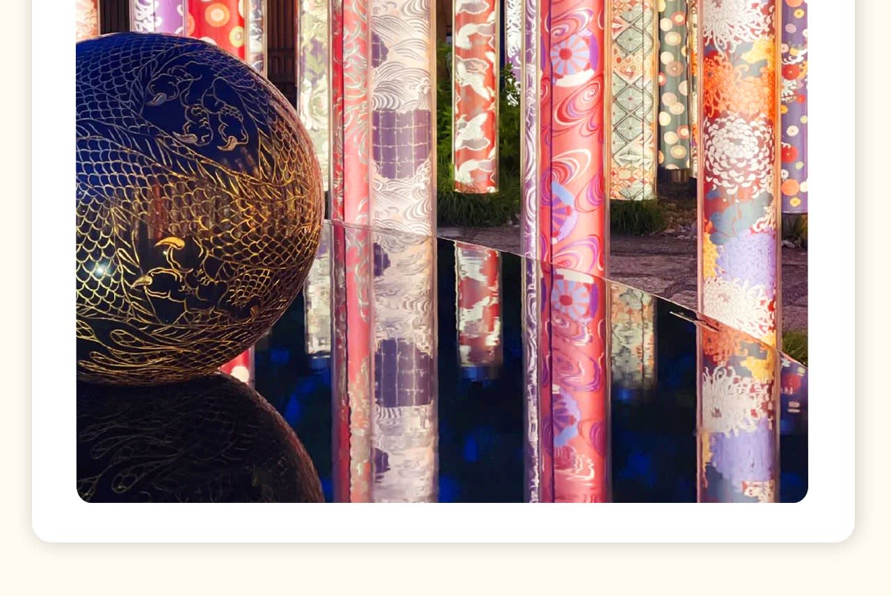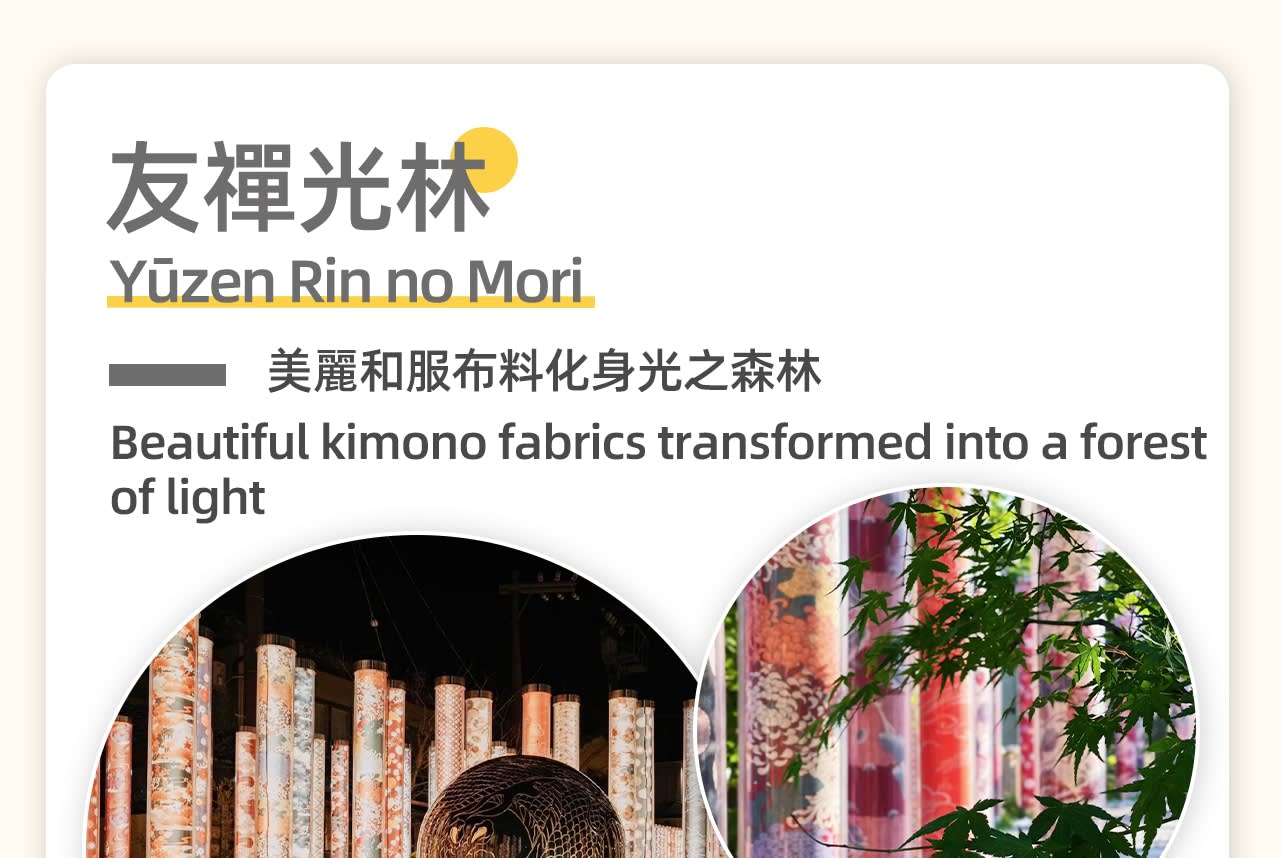 👘기모노 숲: 전통 문화의 독특한 전시👘 기모노 숲은 기모노를 주제로 한 독특한 명소로, 아름다운 기모노로 덮인 수백 개의 원기둥으로 이루어져 있습니다. 각 원기둥에는 일본 전통 기모노의 패턴과 색상이 전시되어 있어 일본 전통 직조 기술의 정교함을 보여줍니다. 이곳은 사진 촬영의 훌륭한 배경일 뿐만 아니라 일본 전통 문화의 매력을 보여줍니다. 아라시야마를 방문할 때 이 독특한 예술적 분위기에 흠뻑 빠져보세요🎎.