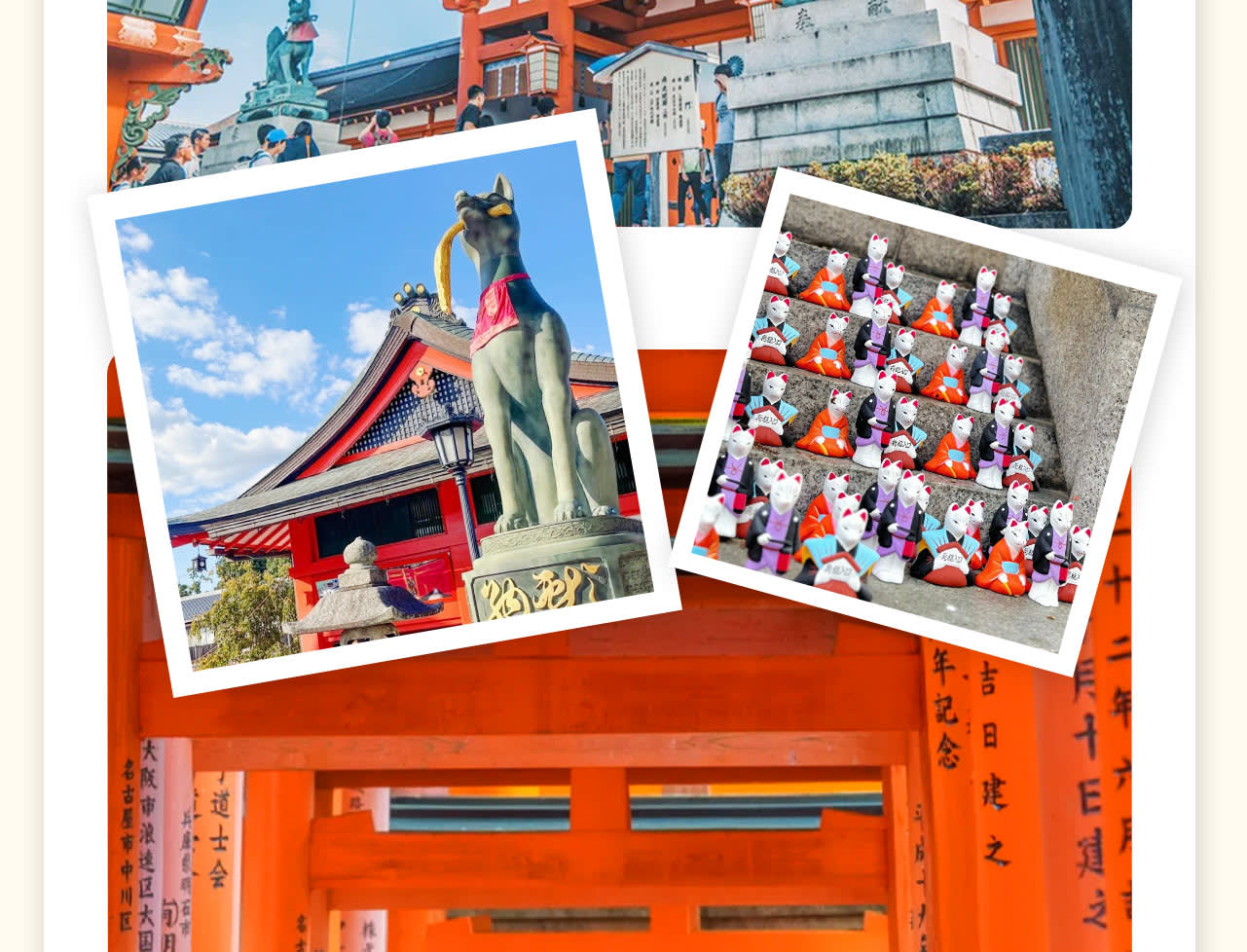 * 🏮 SNS에서 핫플레이스인 ⛩️ 후시미 이나리 신사와 붉은 "센본도리이"에서 인생샷을 찍고, 끝없이 이어지는 도리이 길을 거닐며 신비로운 분위기를 느껴보세요.