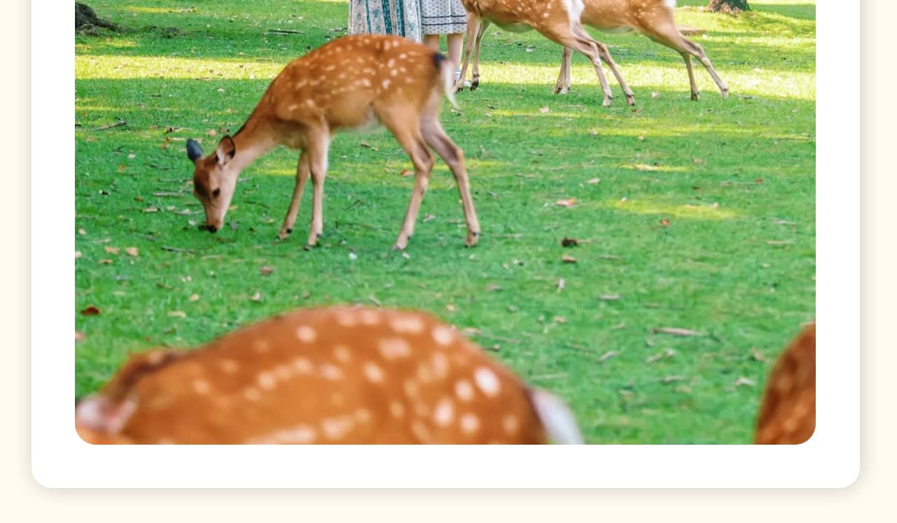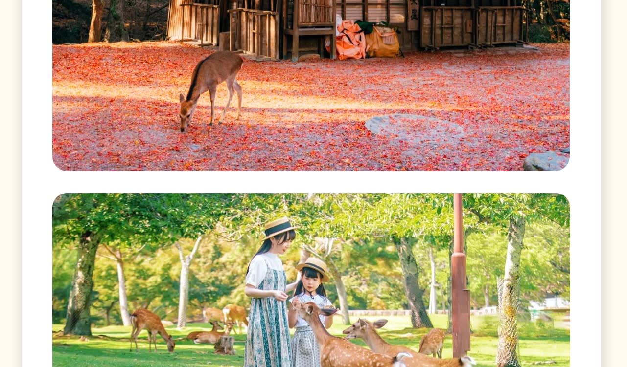🦌나라 공원 (고객 그룹(1~3인)당 사슴 과자 1봉지 증정)🦌 사슴이 영혼인 도시입니다. 나라 공원에서 수천 마리의 야생 사슴과 교감하며 먹이를 주고 사진을 찍으며 순한 눈빛과 친근한 모습을 느껴보세요💕.