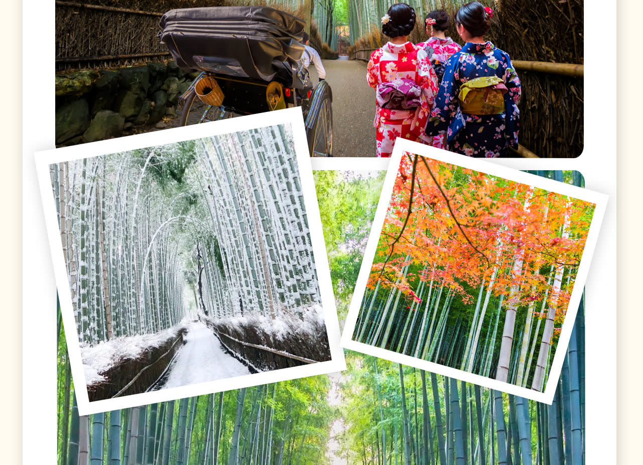 * 🍁 아라시야마 사가노를 거닐며 대나무 숲길의 고요함 속에서 도시인들이 꿈꿔온 평화로운 천국을 경험하세요.