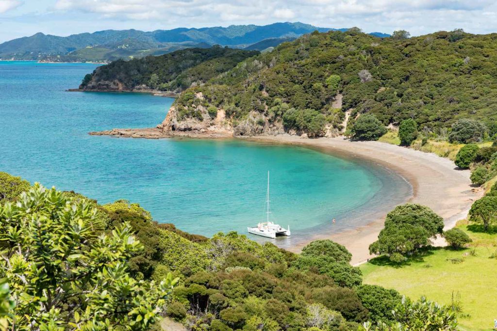 쌍동선 타고 뉴질랜드식으로 베이 오브 아일랜즈를 탐험하는 일일 어드벤처