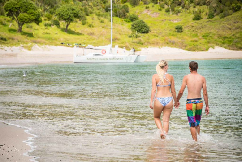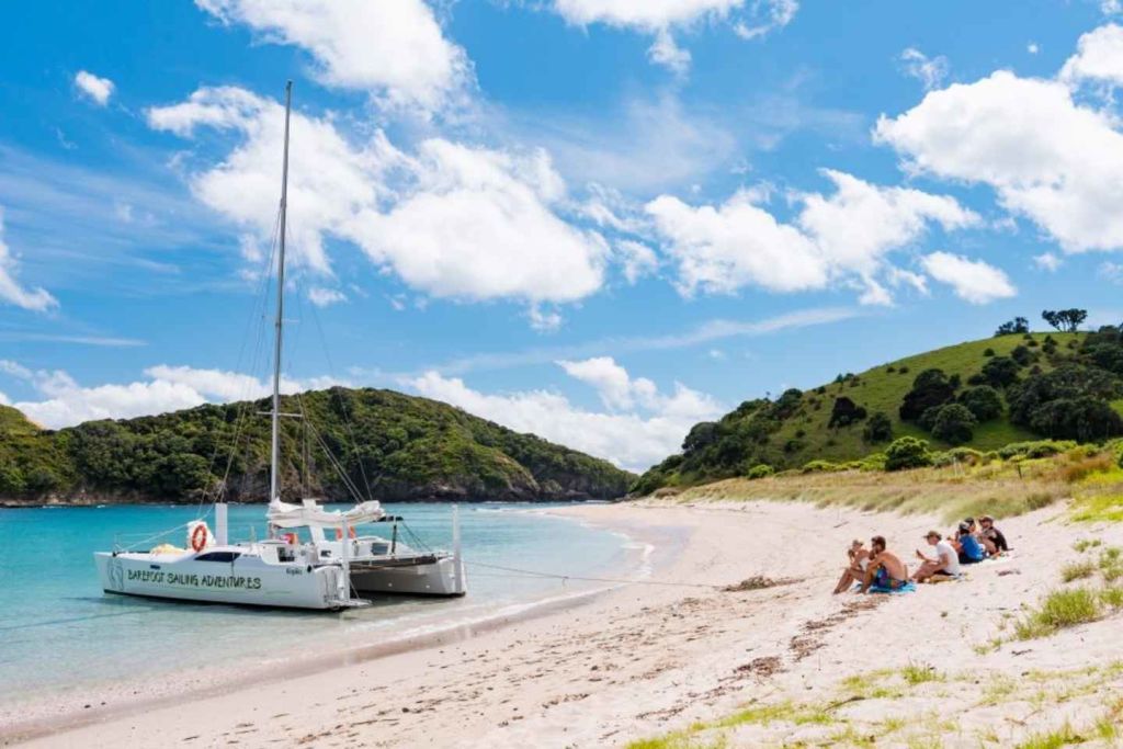 베이 오브 아일랜즈에서 마법 같은 하루 동안 항해 어드벤처를 시작해보세요. 파이히아 해변에서 현대식 쌍동선을 타고 크루즈에 참여하며 뉴질랜드 현지인들의 맨발 문화에 직접 참여해 보세요.