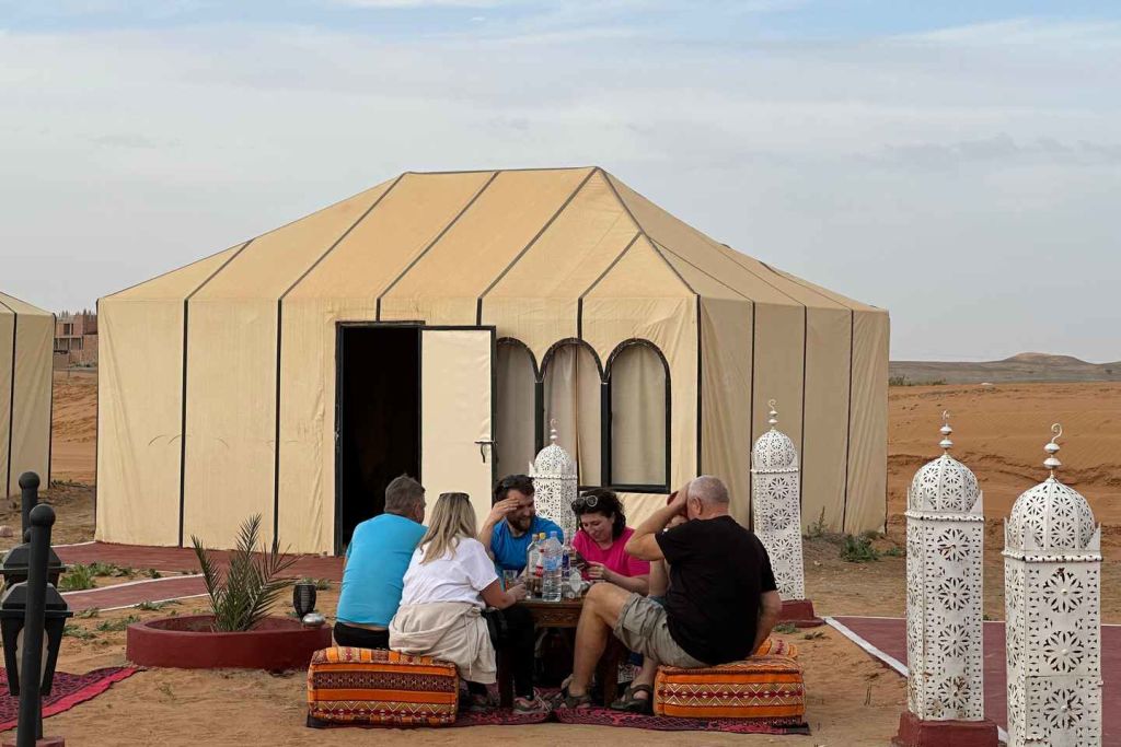 사막에서 아침 식사를 한 후, 변화하는 사막 풍경을 감상하며 돌아오는 여정을 시작합니다. 마라케시 또는 페스에서 하차하여 편안하게 여행을 계속하실 수 있습니다.
