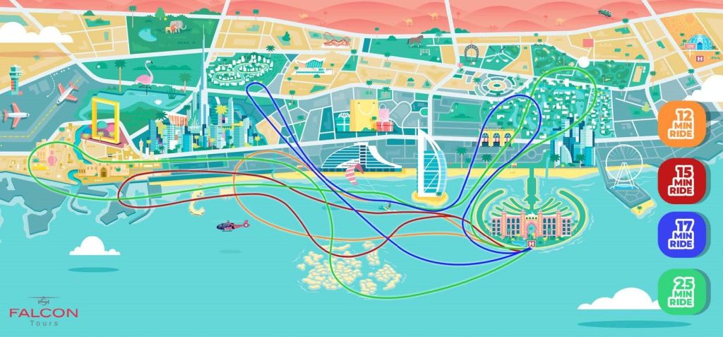 팜 주메이라, 부르즈 알 아랍 등 세계적으로 유명한 랜드마크 위를 비행하세요.
