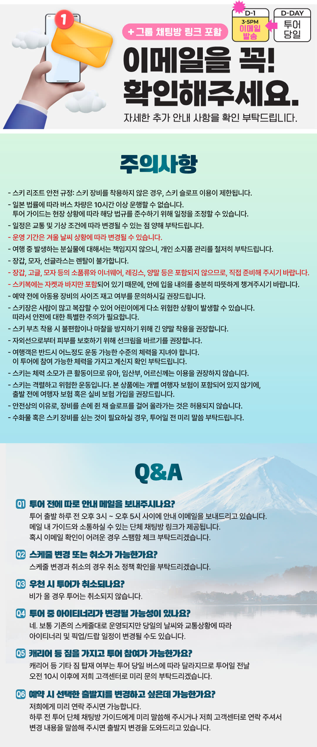 - 겨울에만 할 수 있는 투어를 원하시는 분