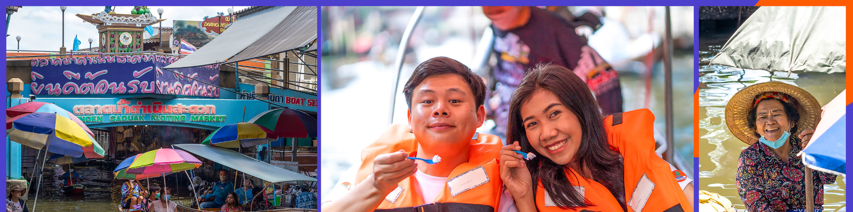* 다음으로 담넌 사두억 수상시장을 방문해 좁은 운하를 누비며 태국 길거리 음식과 현지 상품의 다채로운 색감과 풍미를 경험해 보세요.