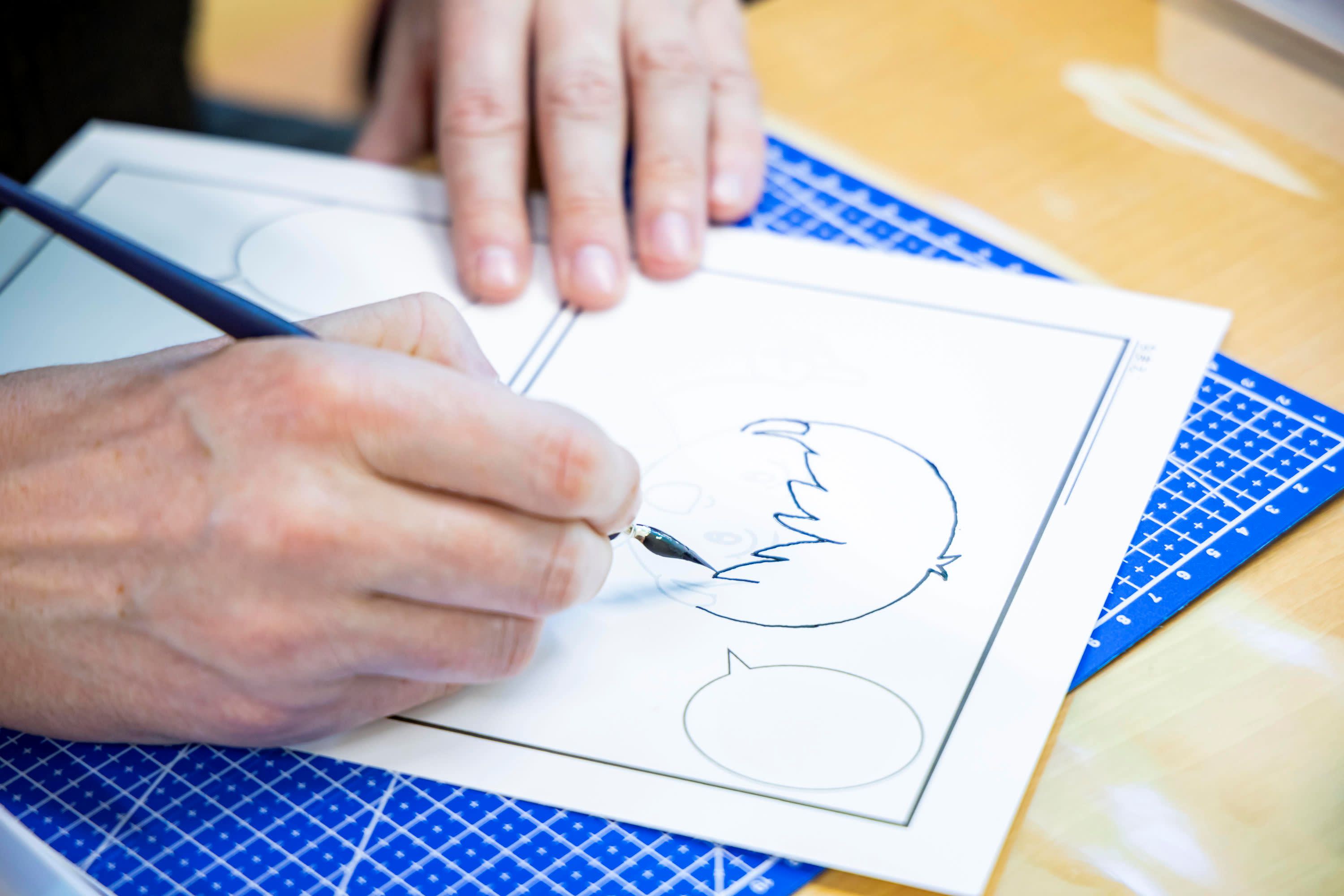 만화를 좋아하시는 분들께 희소식! 프로 아티스트 감수하에 본격적이면서 초보자도 쉽게 따라 할 수 있는 만화 그리기 교실입니다. 디지털 태블릿이 등장하기 전인 1970년대의 전통적인 만화가 도구와 기법을 체험할 수 있습니다. [만화 제작 체험] 시작 10분 전에 현지 집합 소요 시간 50분 1. 프로그램 설명 2. 만화가가 그린 밑그림을 바탕으로 펜 넣기 3. 스크린톤 붙이기 4. 완성된 만화는 그대로 가져가도 좋습니다.
