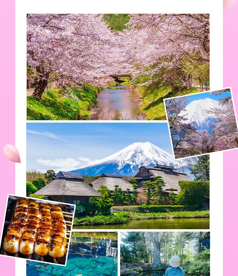 * 자연 & 전통: 후지산의 녹은 눈으로 채워진 수정처럼 맑은 연못으로 유명한 평화로운 오시노 핫카이 마을을 거닐어 보세요.