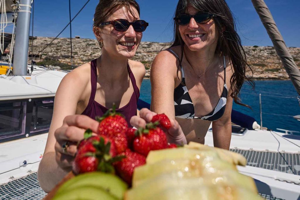 편리한 호텔 픽업 서비스를 이용하거나 선택에 따라 매력적인 헤라클리온 올드 베네치아 항구에서 바로 모험을 시작하세요. 요트에 탑승하기 전에 고대 요새의 멋진 경치를 감상하세요.