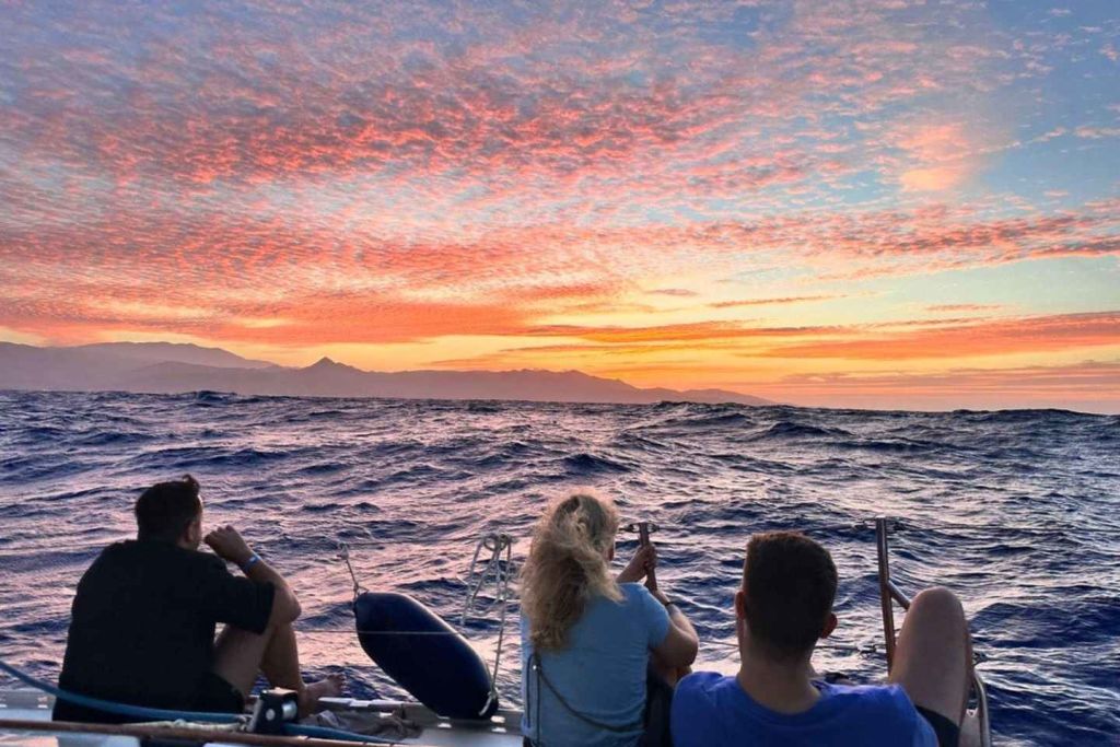 디아 섬까지 가는 데는 날씨에 따라 약 1시간 정도 소요됩니다. 대부분의 경우 날씨에 따라 돛을 올리고 바람의 힘을 이용할 수 있습니다. 도중에 섬의 역사와 전설에 대한 흥미로운 이야기를 들으며 장난기 가득한 돌고래를 관찰하세요. 원하신다면 자유롭게 세일링 액티비티에 참여하실 수 있습니다!