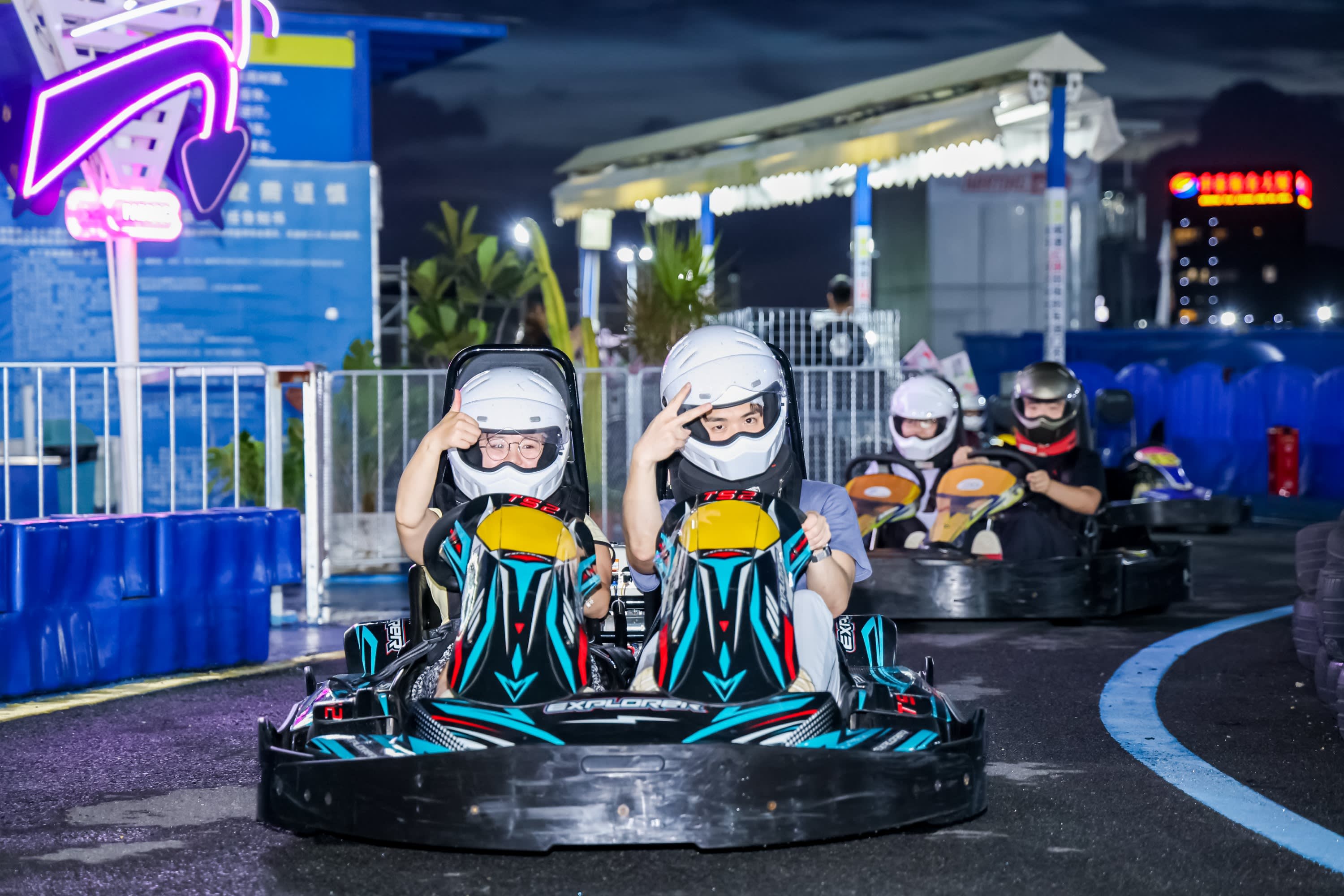 클라인 블루 테마 포토존: 독특한 클라인 블루 색상이 인더스트리얼 스타일의 루프탑과 완벽하게 조화를 이루어 특별한 포토 스팟을 선사합니다. 넓은 트랙에서 스피드와 열정을 만끽하세요: 긴 직선 코스와 연속 커브를 포함한 트랙에서 카트의 스피드와 열정을 즐기며 스트레스를 해소해 보세요. 전문 장비로 안전하게: 전문 보호 장비와 코치의 지도를 제공하여 모든 참가자의 안전을 보장합니다.