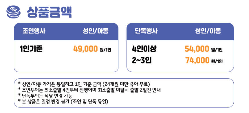 한국인 전용 상품 (타사, 로컬 회사 조인 없이 진행)