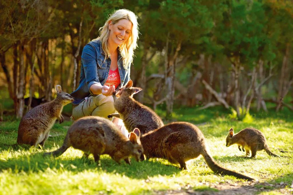 • 자유롭게 돌아다니는 캥거루와 왈라비를 만지고 먹이를 줄 수 있는 기회를 가져보세요