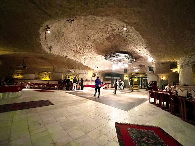 튀르키예 7개 지역의 전통 춤 공연이 지하 동굴 레스토랑에서 펼쳐집니다. 훌륭한 음향 시설을 갖춘 넓은 무대는 어느 테이블에서든 편안하게 관람할 수 있도록 설계되었습니다.