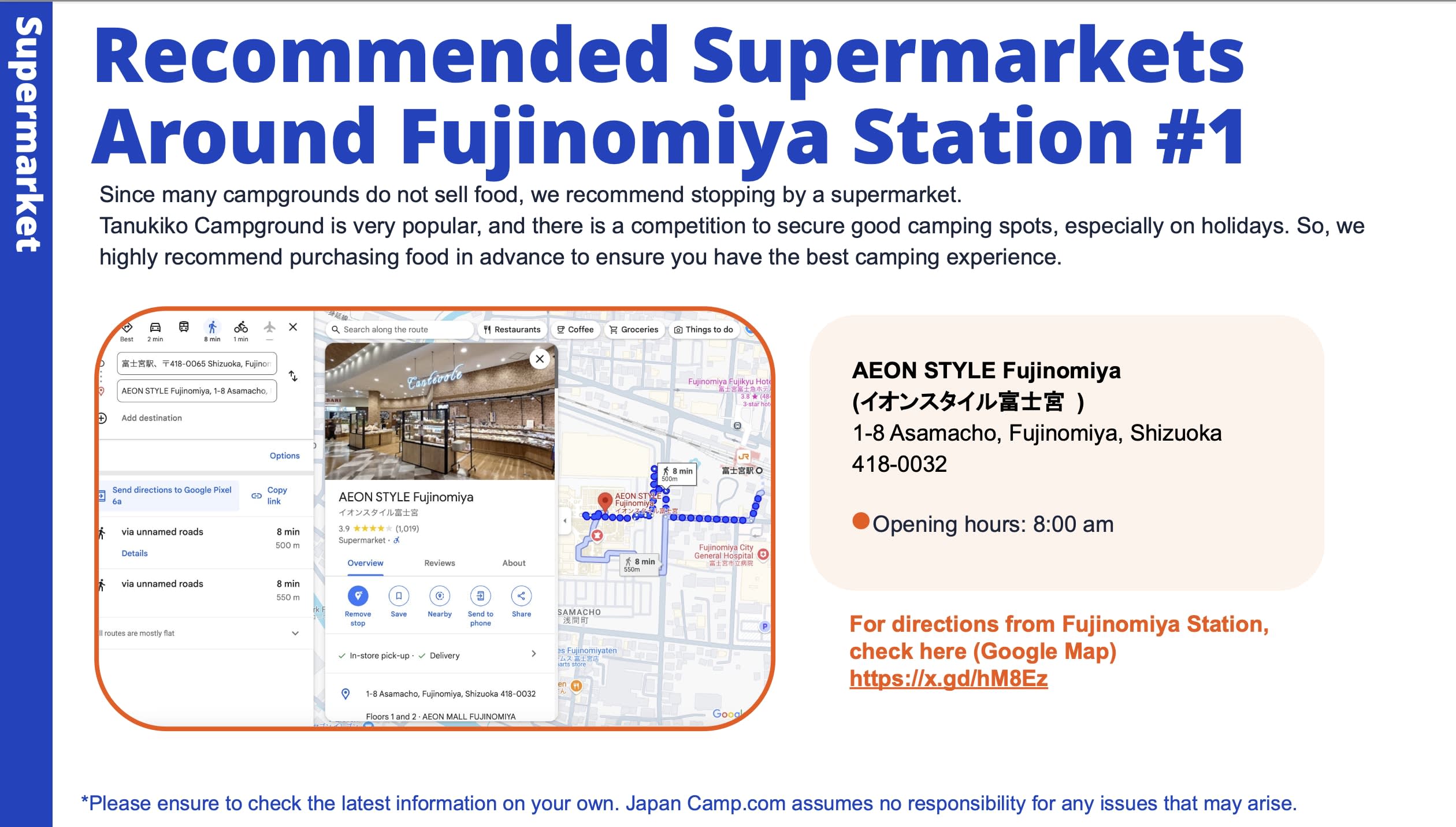【다누키 호수 캠핑장의 매력】 차량은 물론, 가장 가까운 역에서 버스로 캠핑장에 오실 수 있어 편리성이 높은 것이 장점입니다. 역 앞에 슈퍼마켓도 있어, 쇼핑을 하고 캠핑장으로 향할 수 있습니다. 또한, 다누키 호수에서 사이클링은 물론, 근처의 관광 명소인 '시라이토 폭포'나 동물과 교감할 수 있는 '마카이노 목장'을 즐기시는 분에게도 추천합니다.