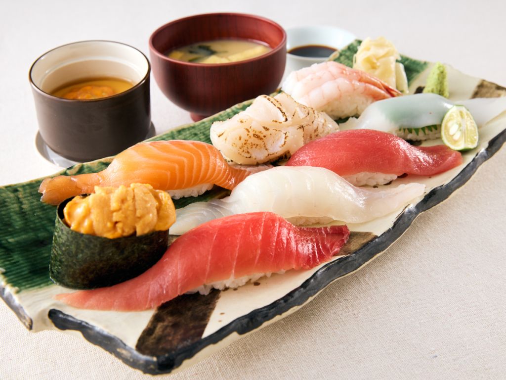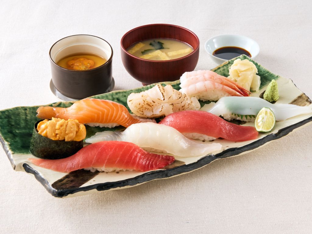 중도로(중간 지방 참치), 아카미(붉은 살 참치), 도미, 연어, 가리비, 단새우, 오징어, 성게알이 포함됩니다.