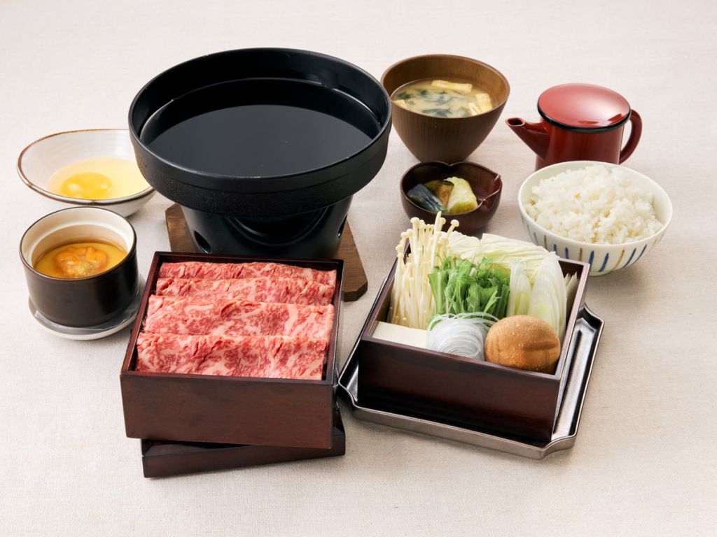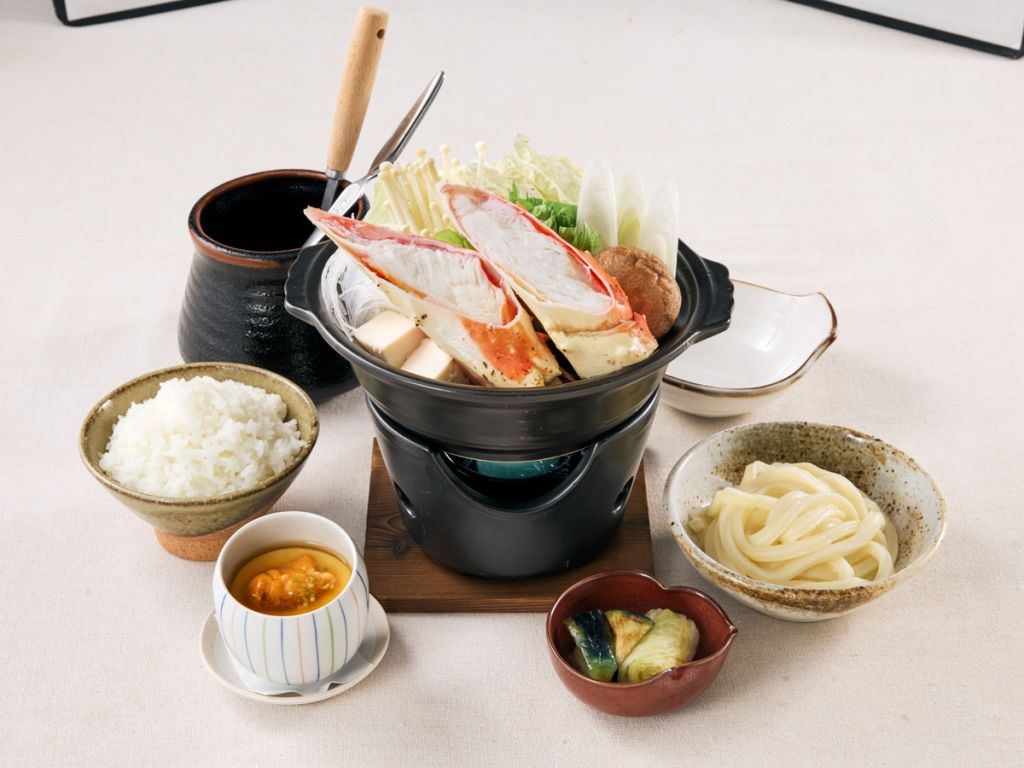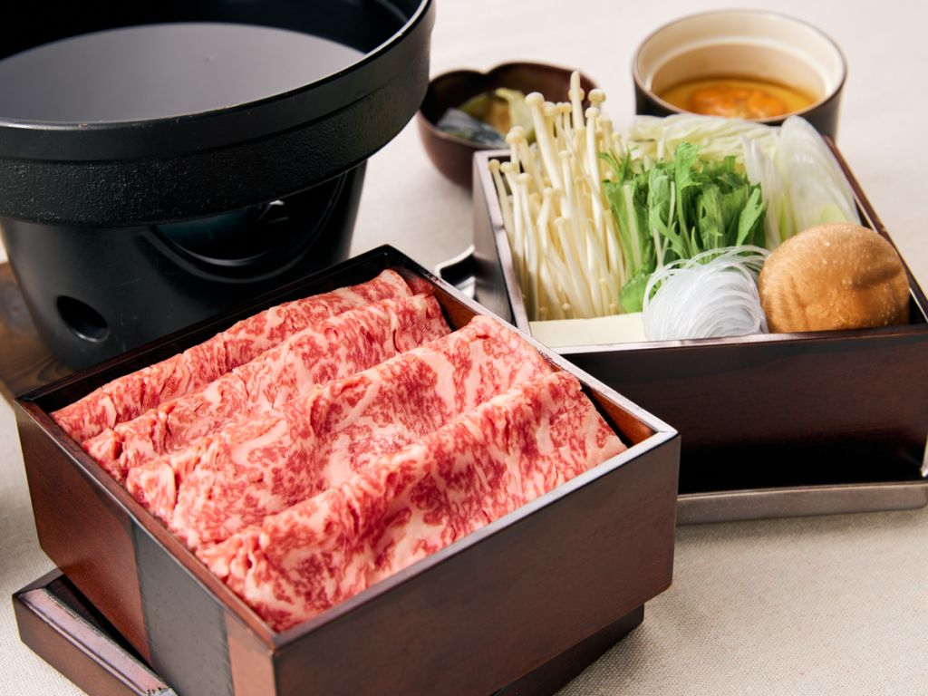 흑모 와규 스테이크, 스키야키, 게 전골, 하쿠바 돼지 로스카츠, 튀김, 초밥 등 엄선한 재료로 구성된 정식을 제공합니다.
