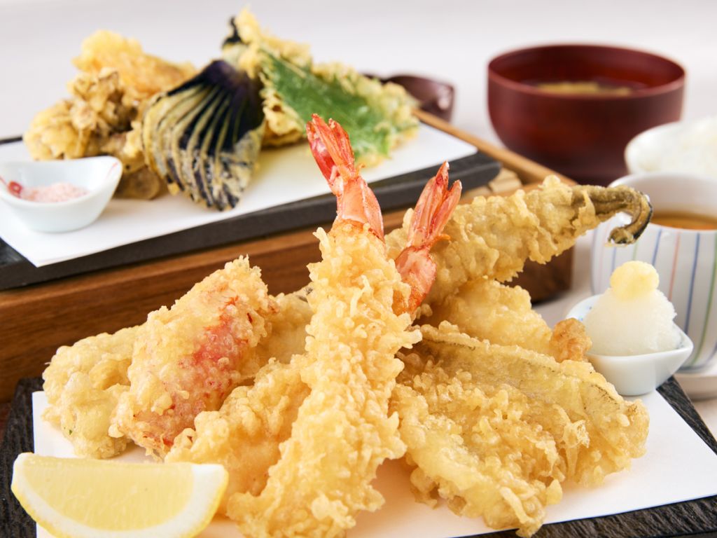 텐푸라는 바삭하게 튀겨져 한 입마다 신선한 맛이 가득합니다.