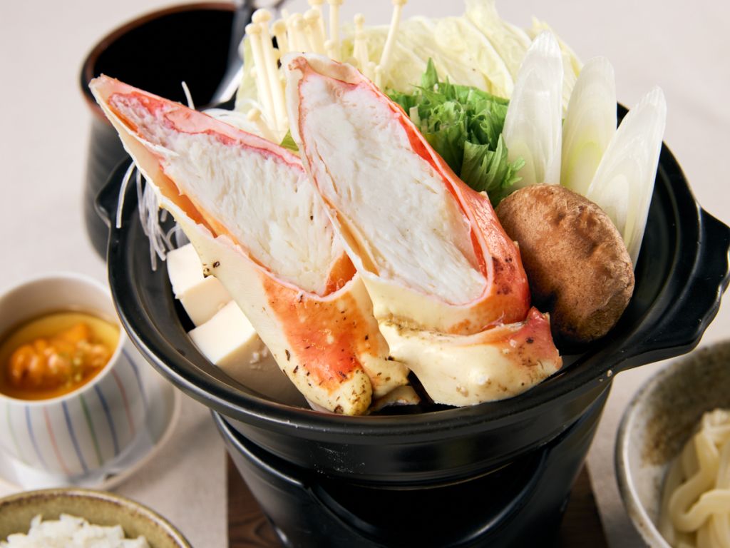 특제 다시 국물에 킹크랩과 신선한 채소를 함께 끓여