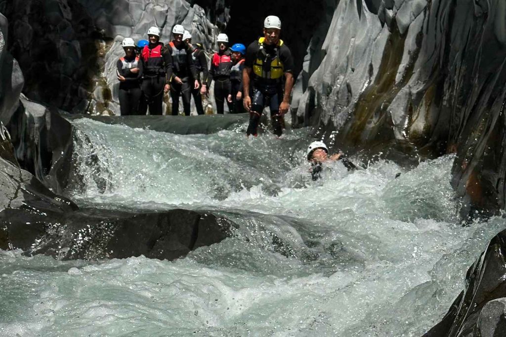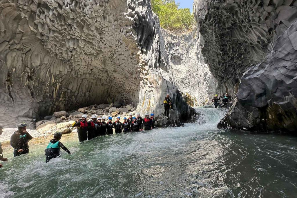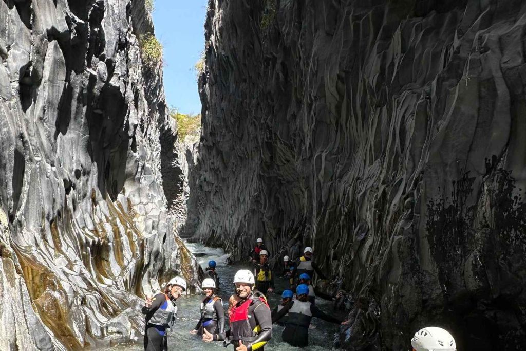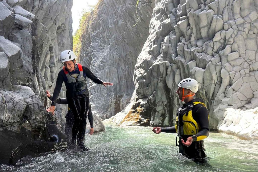알칸타라 계곡에 위치한 맑은 강물 속으로 걸어 들어가세요. 전문 가이드를 따라 트랙을 따라 화산에서 유래한 암벽을 탐험하세요. 알칸타라 협곡의 자연 협곡을 안쪽에서 바라보세요.