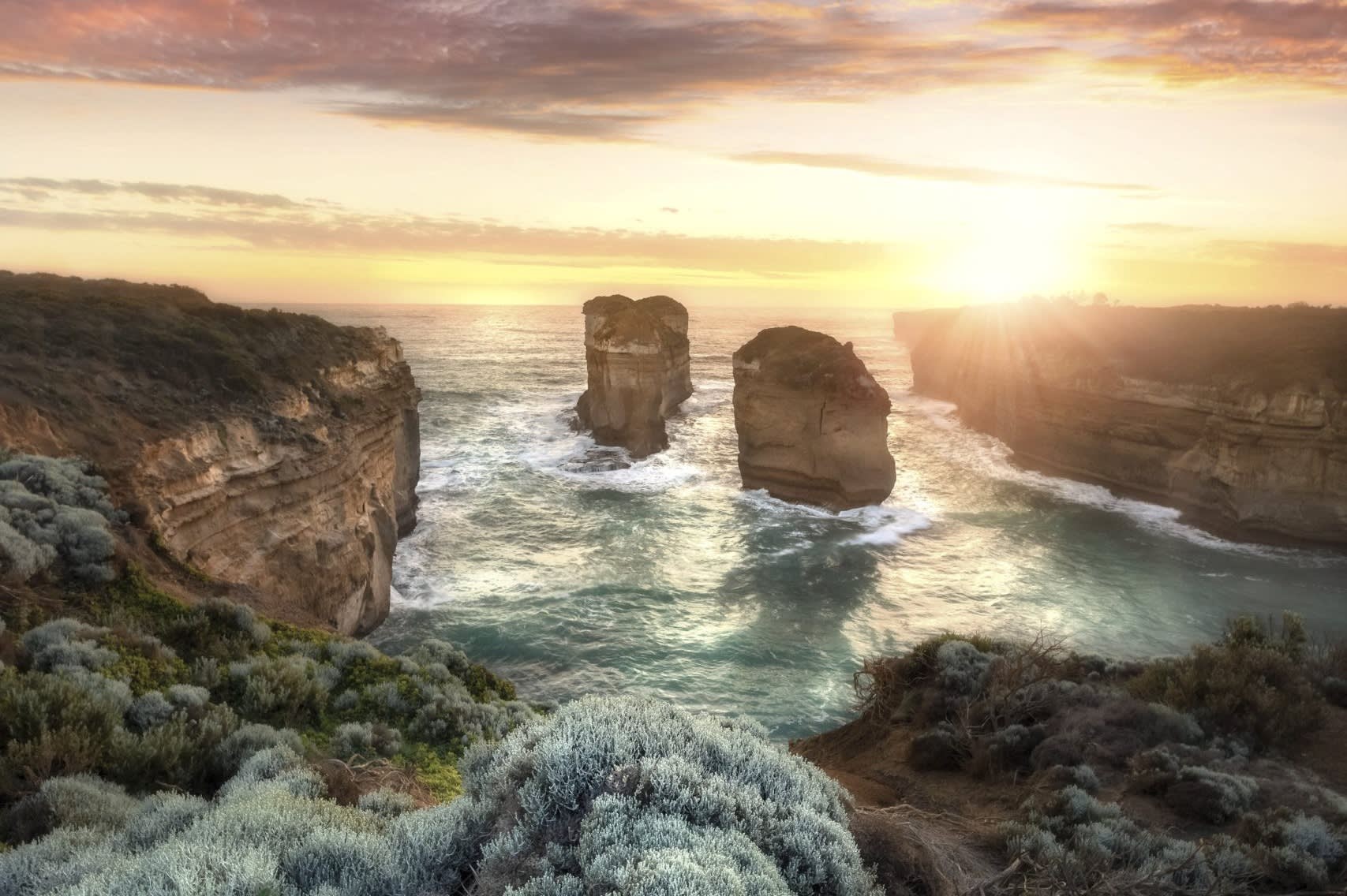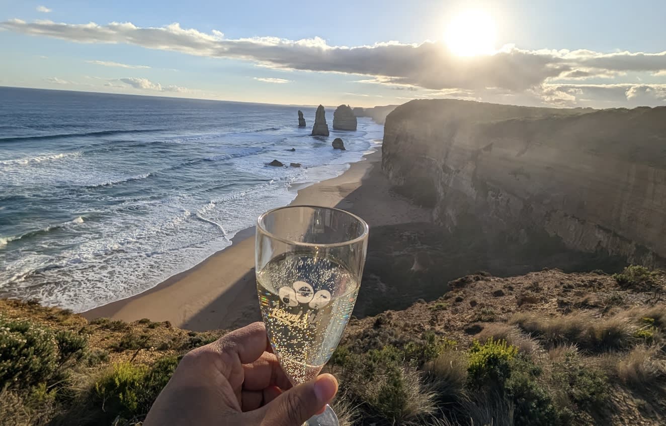 세계적으로 유명한 12사도 바위의 멋진 경관을 감상하며 스파클링 와인으로 축배를 들어보세요. 깁슨 스텝스의 황금빛 모래사장을 걷고, 1878년 난파선의 이야기가 담긴 드라마틱한 로크 아드 협곡을 탐험해보세요.