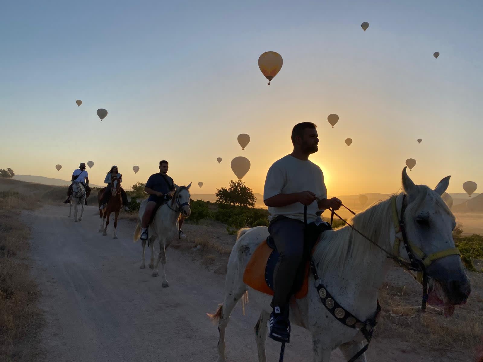 말을 타고 돌아오기 전에 하늘을 물들이는 석양의 매혹적인 색상에 흠뻑 빠져보세요. 출발점으로 돌아온 후 편안하게 호텔로 이동하여 카파도키아에서 잊을 수 없는 모험의 추억을 소중히 간직하세요.