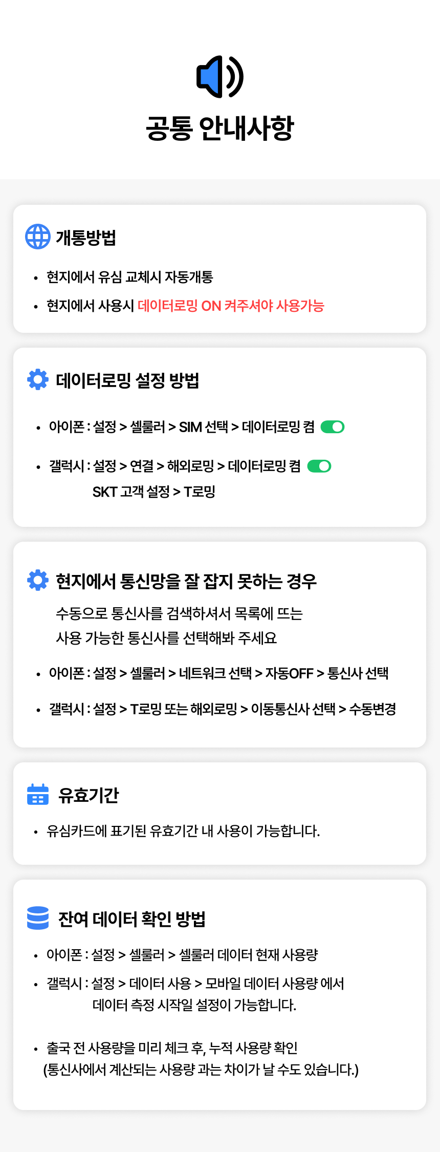 사용 방법 : 데이터로밍 ON 켜주셔야만 데이터 사용 가능