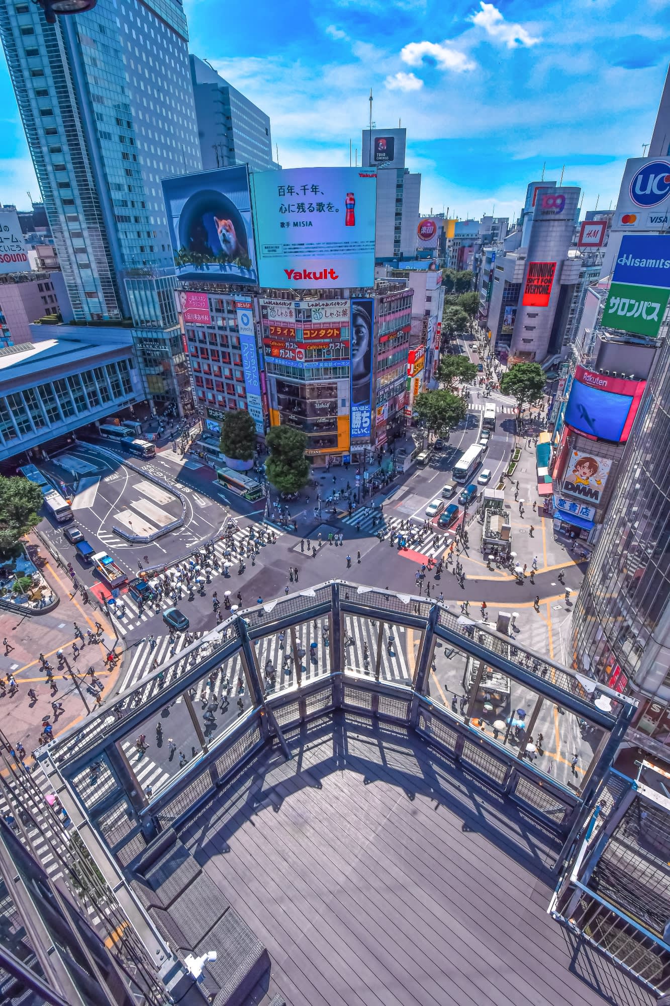 * 바로 위에서 시부야 교차로를 내려다보며, 다채롭게 변화하는 시부야의 표정을 낮부터 밤까지 감상하세요.