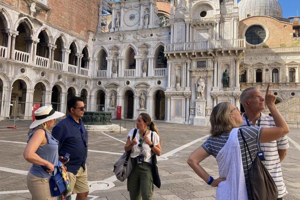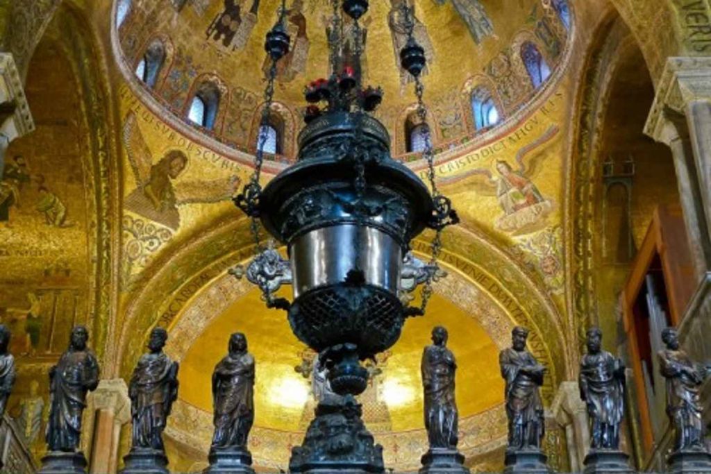 산 마르코 광장에서 시작하여 산 마르코 대성당과 19세기까지 베니스 공작의 사설 예배당이었던 도제궁을 완벽하게 감상하세요. 특권적인 입장권을 받고 (종종 긴) 줄을 피해 웅장한 대성당에 들어가 황금 모자이크를 가까이서 감상하세요. 시간을 내어 수많은 보물을 탐험하세요.