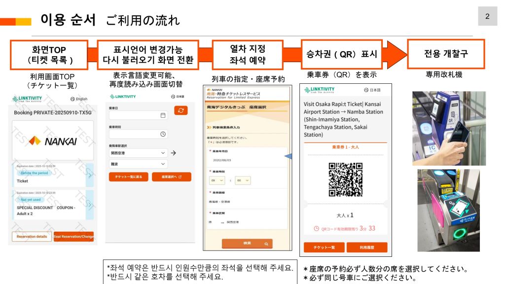 [오사카] 난카이 라피트 특급열차 편도권 [난바역(신이마미야역,덴가차역,사카이역) → 간사이공항] 디지털티켓