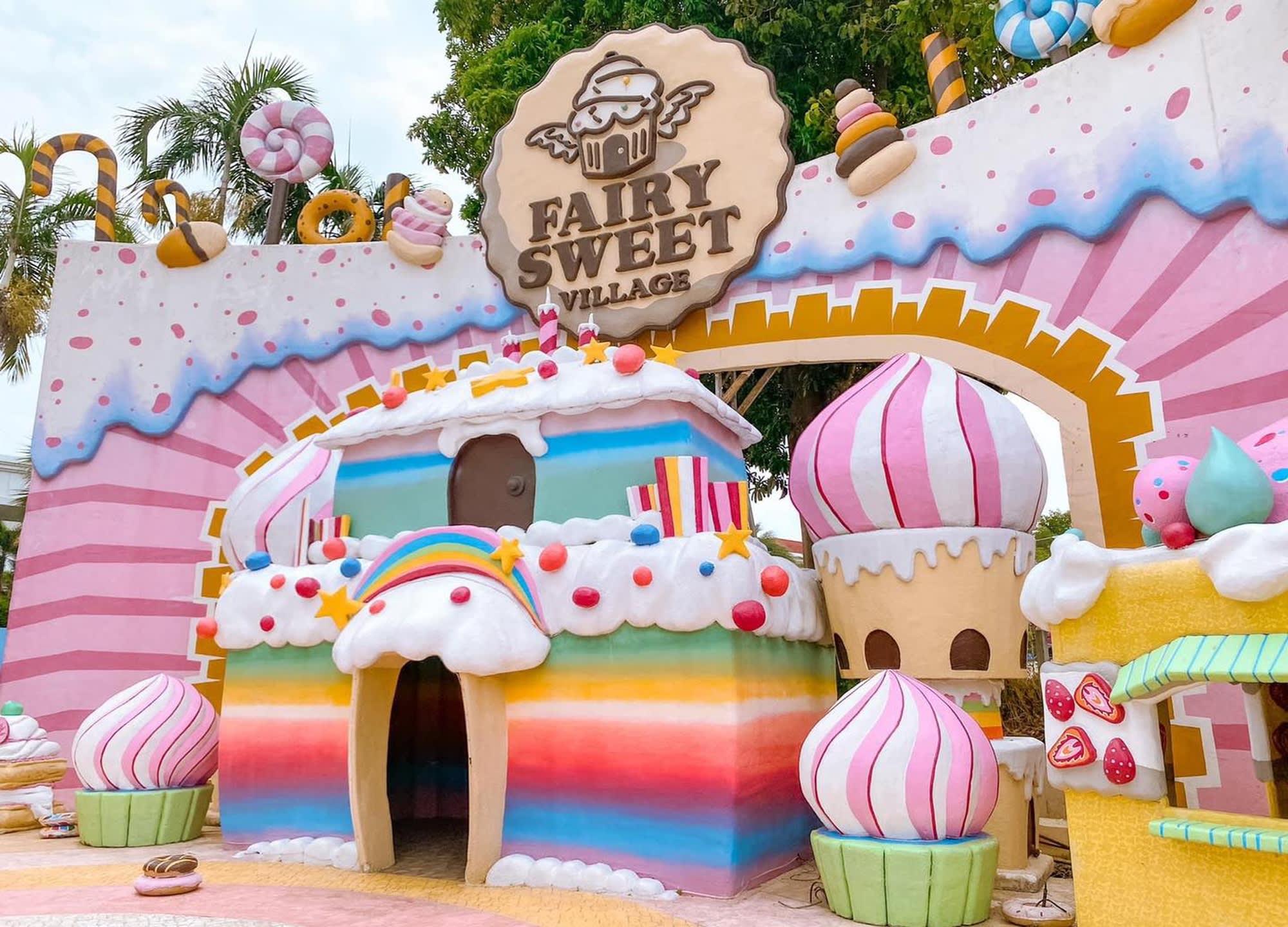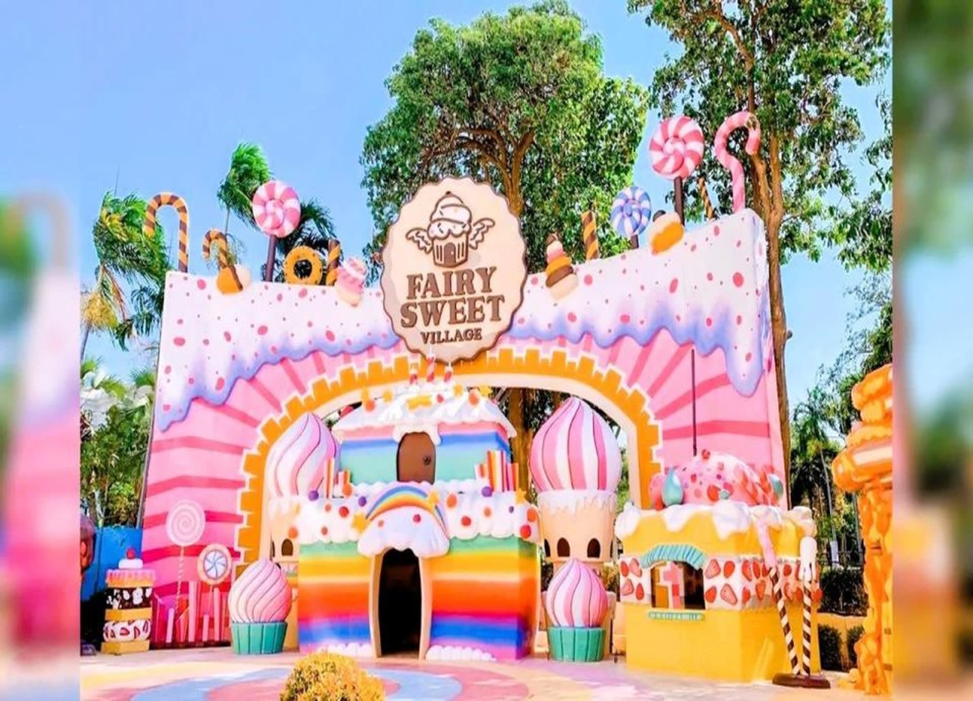 페어리 스위트 빌리지(Fairy Sweet Village)는 실물 크기의 막대사탕, 사탕수수, 진저브레드 하우스 등