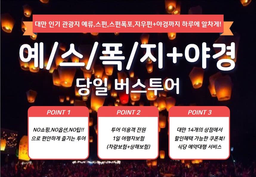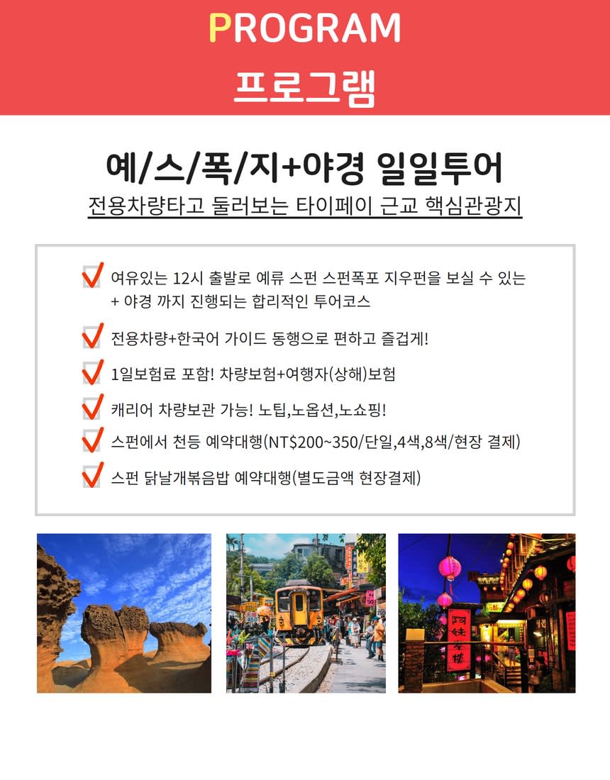 - 지우펀 하차 가능 (투어 당일 가이드에게 전달)