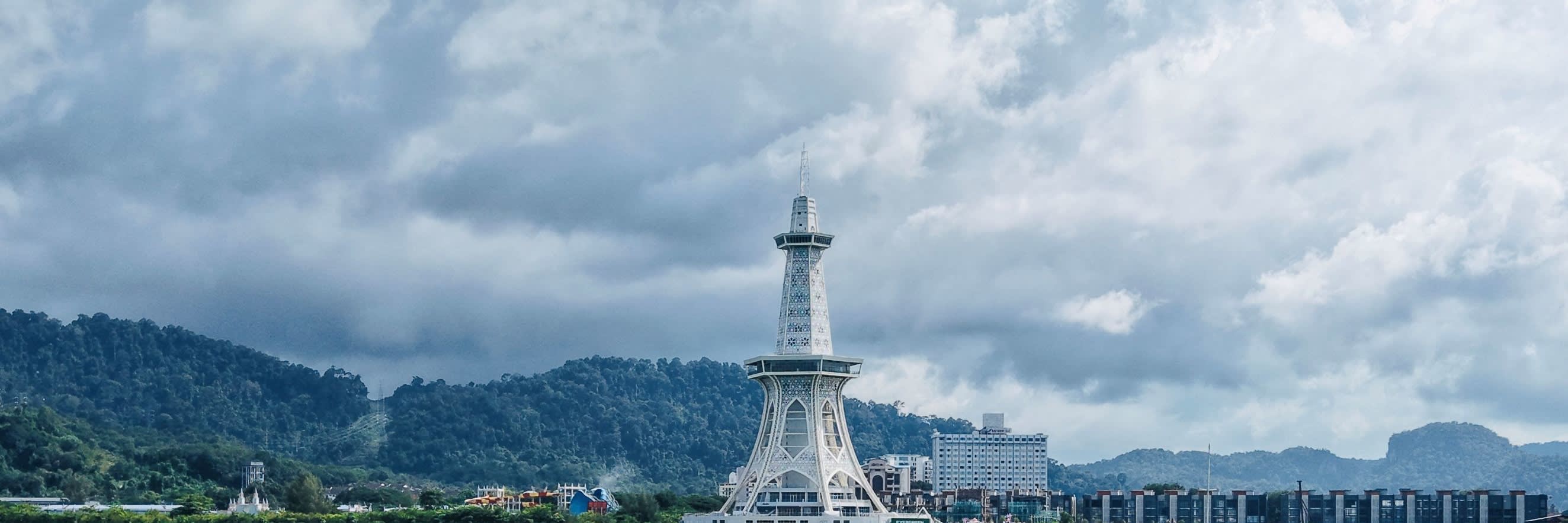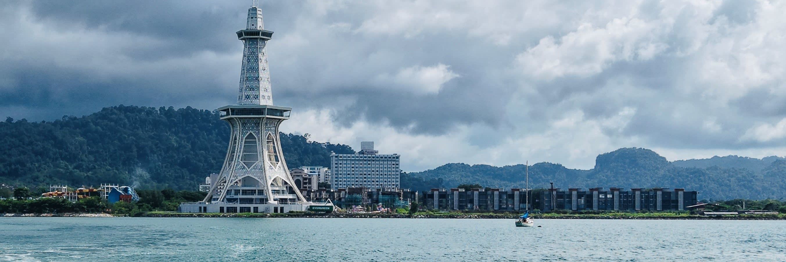 * 이글 스퀘어 (Dataran Lang)와 마하 타워를 배경으로 황금빛 노을 아래 인생 커플 사진을 찍어보세요.