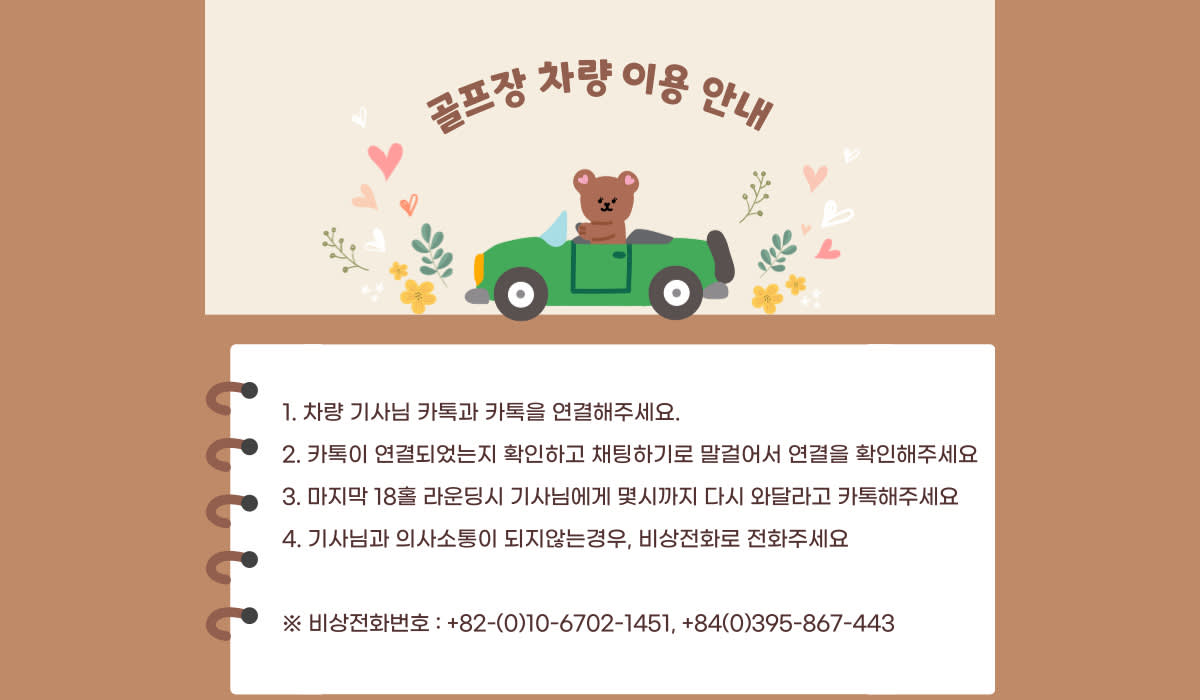 🐱 골프장 왕복차량으로 시간제약 없이 투어 당일날 리턴시간 확정하시면 됩니다